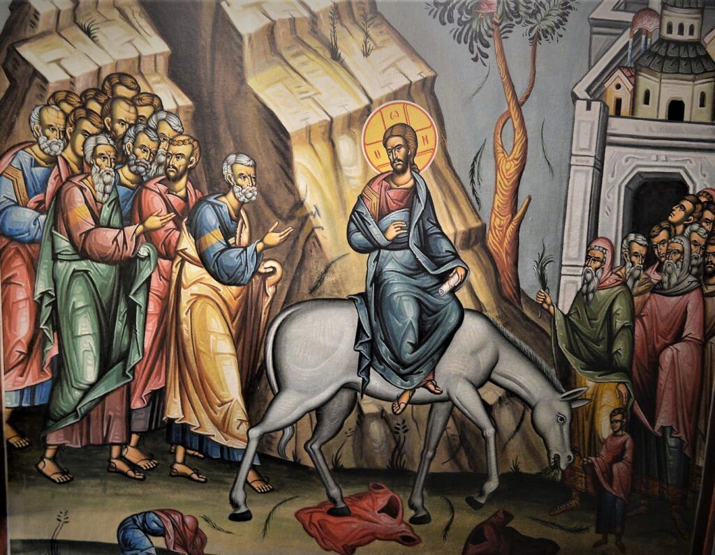 Ας περάσουμε τώρα και σε ένα τρίτο σημείο. Καθώς τώρα ο Κύριος εισέρχεται στα Ιεροσόλυμα επί πόλου όνου καθήμενος, κόσμος πολύς, νέοι, μικροί και μεγάλοι, βγαίνουν με τα βαΐα και τις δάφνες για να προϋπαντήσουν τον Χριστό. Στρώνουν τα ενδύματά τους στο δρόμο και ζητοκραυγάζουν: «ωσαννά, ευλογημένος ο ερχόμενος εν ονόματι Κυρίου, ο βασιλεύς του Ισραήλ». Είναι αυτός ο ίδος ο λαός, ο οποίος μετά από λίγες ημέρες θα κραυγάζει κάτω από το Πραιτώριο «άρον, άρον σταύρωσον αυτόν» και θα ζητάει την θανατική καταδίκη του Κυρίου. Έτσι είναι ο άνθρωπος! Αυτός που τώρα μπορεί να σε θαυμάζει, μετά από λίγο καιρό μπορεί να γίνει ο μεγαλύτερος εχθρός σου. Ένας αρχαίος φιλόσοφος είπε κάποτε ένα πολύ σοφό λόγο: «Να φοβάσαι από την εκδίκηση εκείνων που ευεργέτησες». Σε πάμπολλες περιπτώσεις στην παρούσα ζωή μπορεί να συναντήσει κανείς την αχαριστία των ανθρώπων. Ενδεχομένως και εμείς κάποτε να γευθούμε την αχαριστία ανθρώπων, τους οποίους ευεργετήσαμε. Γι’ αυτό χρειάζεται να προσέχουμε, ώστε αν συμβεί κάτι τέτοιο, να τους συγχωρήσουμε από καρδίας, μιμούμενοι το παράδειγμα του Κυρίου.