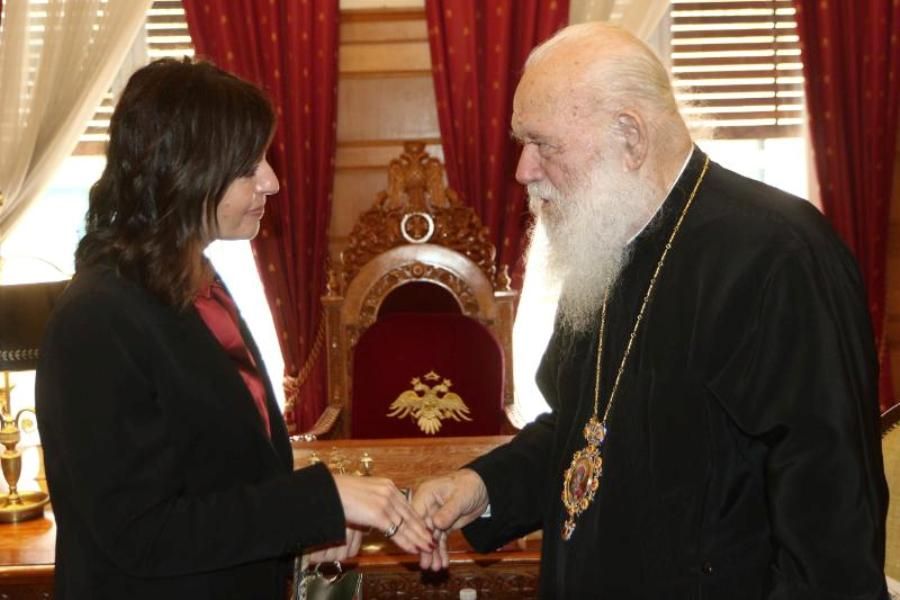 Ο Αρχιεπίσκοπος καλωσόρισε την κα Βρεττού και τους συνεργάτες της και συζήτησαν θέματα κοινού ενδιαφέροντος.