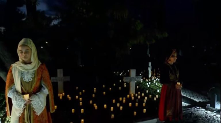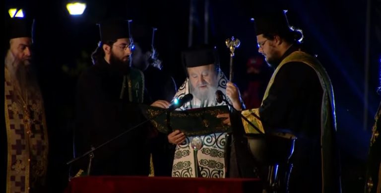 Η ατμόσφαιρα στον Κήπο των Ηρώων ήταν απολύτως κατανυκτική με αναμμένα κεράκια διάσπαρτα και ακτίνες φωτός που έφθασαν μέχρι τον ουρανό. Η ησυχία και η ηρεμία που επικράτησε έδωσε πραγματικά το στίγμα της Ιερής Πόλης και της Θυσίας των Ηρώων.