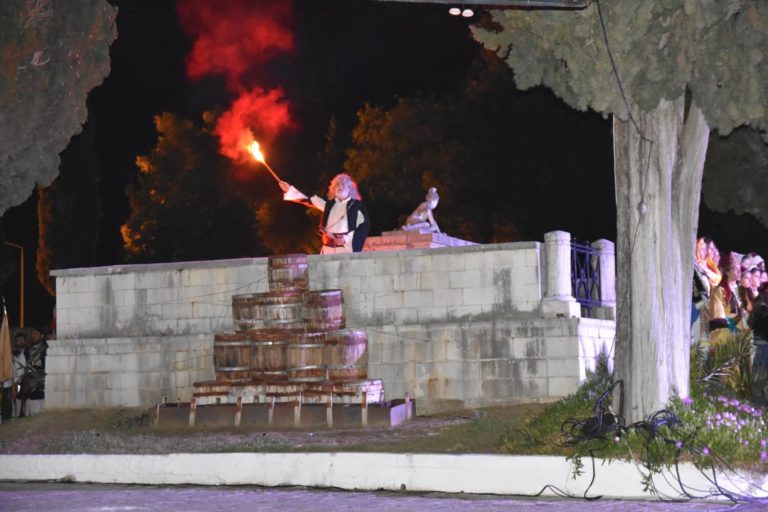 Επίσης, με σεβασμό και κατάνυξη, αμέσως μετά ξεκίνησε η Αναπαράσταση της Ανατίναξης του Καψάλη το Ιερό Ταφείο του Μεσολογγίου, διατηρώντας όλα τα στοιχεία των προηγούμενων ετών.