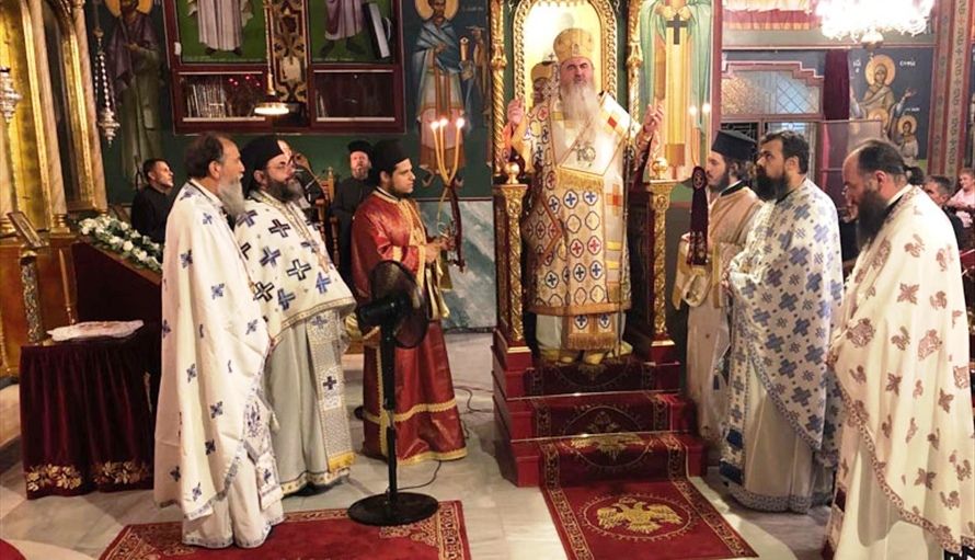 Τηρουμένων των προβλεπόμενων διατάξεων από την πολιτεία για την διαφύλαξη της υγείας του ποιμνίου, τελέστηκε Αρχιερατική Ιερά Αγρυπνία προεξάρχοντος του οικείου Ποιμενάρχου, Σεβασμιωτάτου Μητροπολίτου Νέας Κρήνης και Καλαμαριάς, κ. Ιουστίνου, κατά τη διάρκεια της οποίας τέθηκε η δεξιά χείρα του Αγίου Ευγενίου προς προσκύνηση.