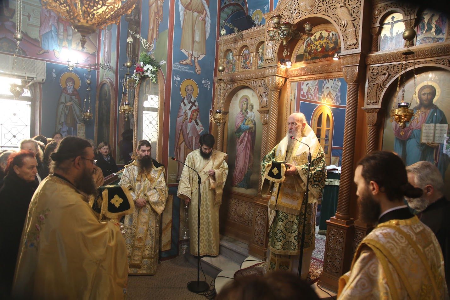 Ἀνήμερα τῆς ἑορτῆς, Τετάρτη 17 Δεκεμβρίου, τελέσθηκε ὁ πανηγυρικός Ὄρθρος, ἡ ἀρχιερατική θεία Λειτουργία καί τό μυστήριο τῆς εἰς Διάκονον χειροτονίας ἀπό τόν Σεβασμιώτατο Ποιμενάρχη μας, μέ συλλειτουργούς τούς: Ἀρχιμ. π. Πολύκαρπο Παστρωμᾶ, Ἡγούμενο τῆς Ἱερᾶς Μονῆς Ἀμπελακιωτίσσης, π. Θωμᾶ Βαμβίνη, Γενικό Ἀρχιερατικό Ἐπίτροπο, π. Πολύκαρπο Θεοφάνη, ἱεροκήρυκα καί ὑπεύθυνο τοῦ Παρεκκλησίου, καί τούς Διακόνους π. Παΐσιο Παρασκευᾶ, π. Ἀντώνιο Ἀντωνιάδη καί π. Ἱερόθεο Καλλία.