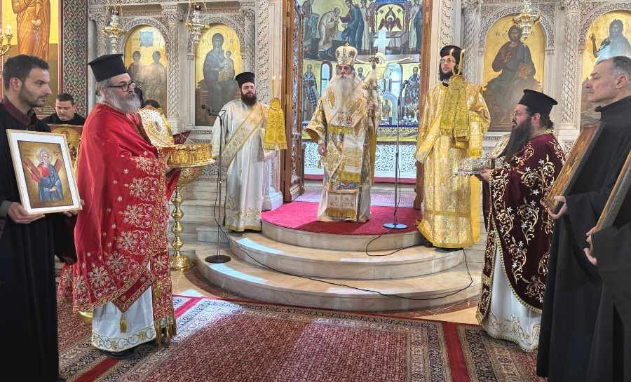 Προ της απολύσεως της Θείας Λειτουργίας του Μεγάλου Βασιλείου, πραγματοποιήθηκε η λιτάνευση των Ιερών Εικόνων και η ανάγνωση του Συνοδικού της Ορθοδοξίας.