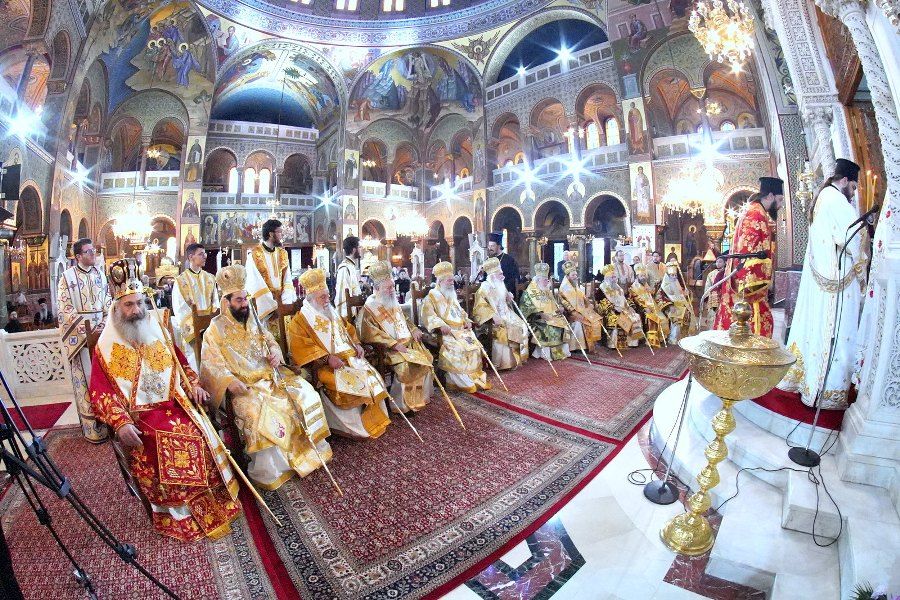 Στον Καθεδρικό Ιερό Ναό Αγίας Τριάδος Πειραιώς το πρωί εψάλη η Ακολουθία του Όρθρου, χοροστατούντος του Σεβασμιωτάτου Μητροπολίτου Σύρου κ. Δωροθέου και στην συνέχεια τελέστηκε πολυαρχιερατικό συλλείτουργο προεξάρχοντος του Σεβασμιωτάτου Μητροπολίτου Νικαίας κ. Αλεξίου και συνιερουργούντων των Σεβασμιωτάτων Μητροπολιτών Ύδρας κ. Εφραίμ, Σύρου κ. Δωροθέου, Χαλκίδος κ. Χρυσοστόμου, Γλυφάδας κ. Αντωνίου, Γρεβενών κ. Δαβίδ, Τρίκκης κ. Χρυσοστόμου, των Θεοφιλεστάτων Επισκόπων Ευρίπου κ. Χρυσοστόμου, Σταυροπηγίου κ. Αλεξίου, Αχελώου κ. Νήφωνος και του εορτάζοντος Σεβασμιωτάτου Μητροπολίτου Πειραιώς κ. Σεραφείμ.