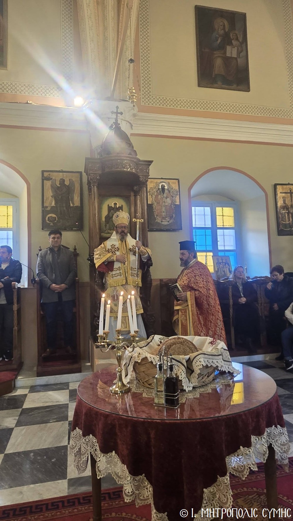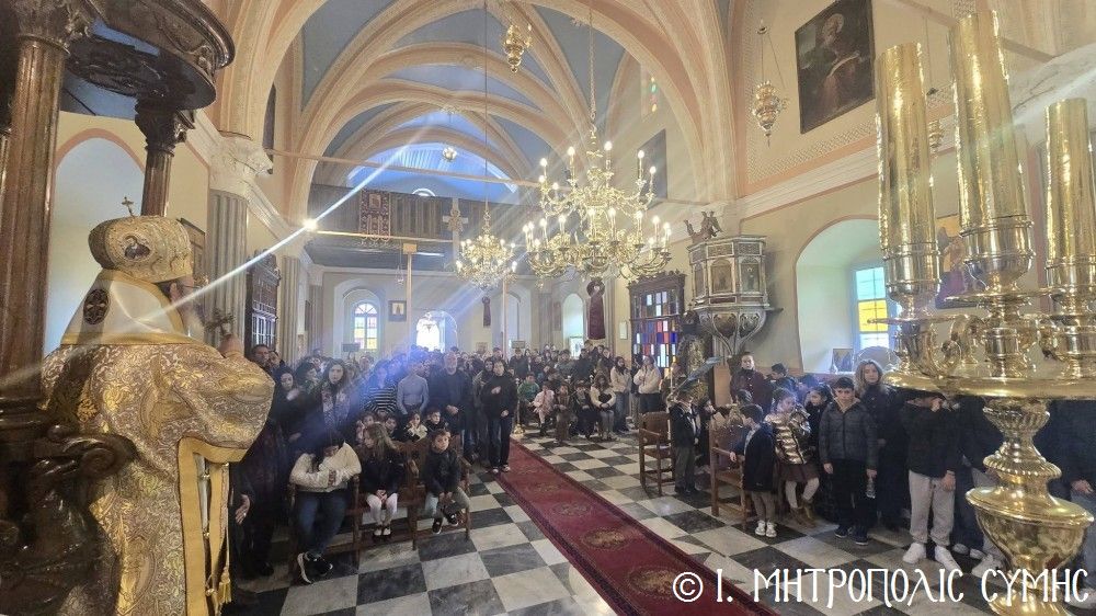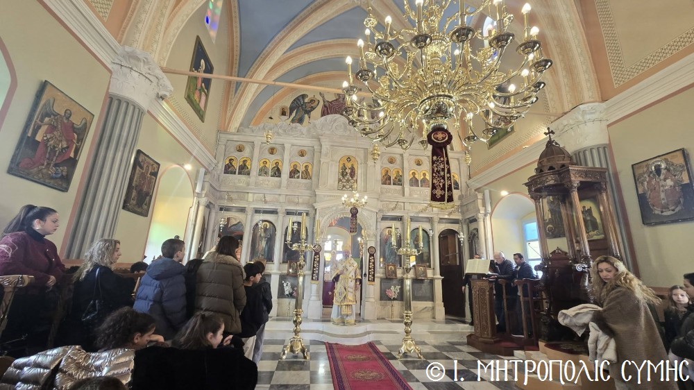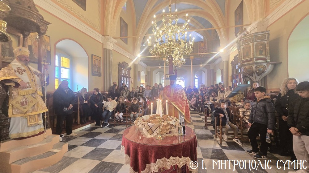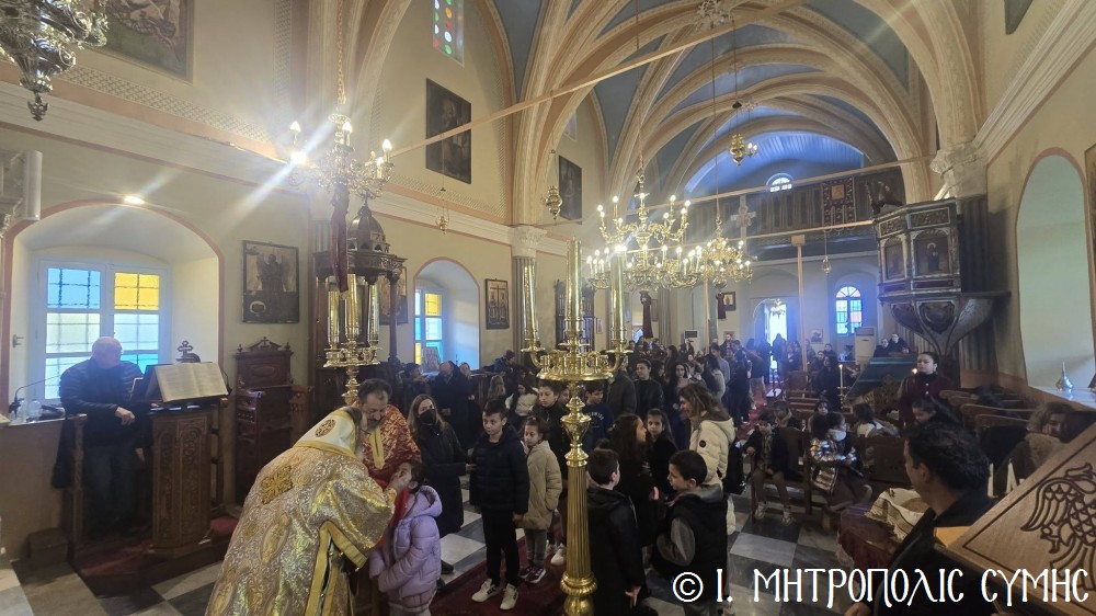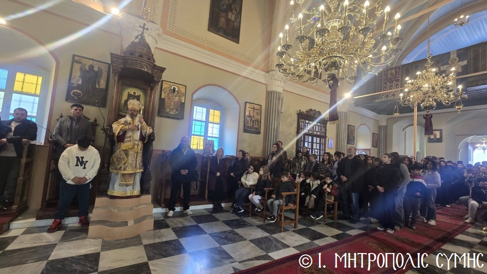 Κατά τήν ἀπόλυση τῆς Θείας Λειτουργίας ὁ Θεοφιλέστατος κ. Ἀντώνιος, εὐχήθηκε τά δέοντα σέ ἐκπαιδευτικούς καί μαθητές καί μετέφερε σέ ὅλους τήν πατρική ἀγάπη τοῦ Σεβασμιωτάτου Μητροπολίτου Σύμης κ. Χρυσοστόμου.