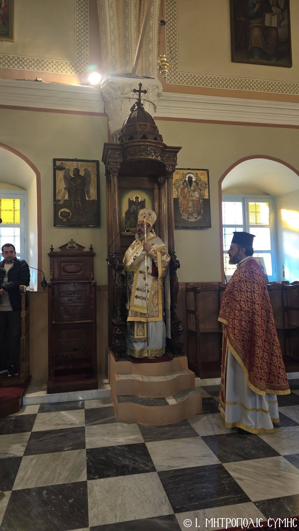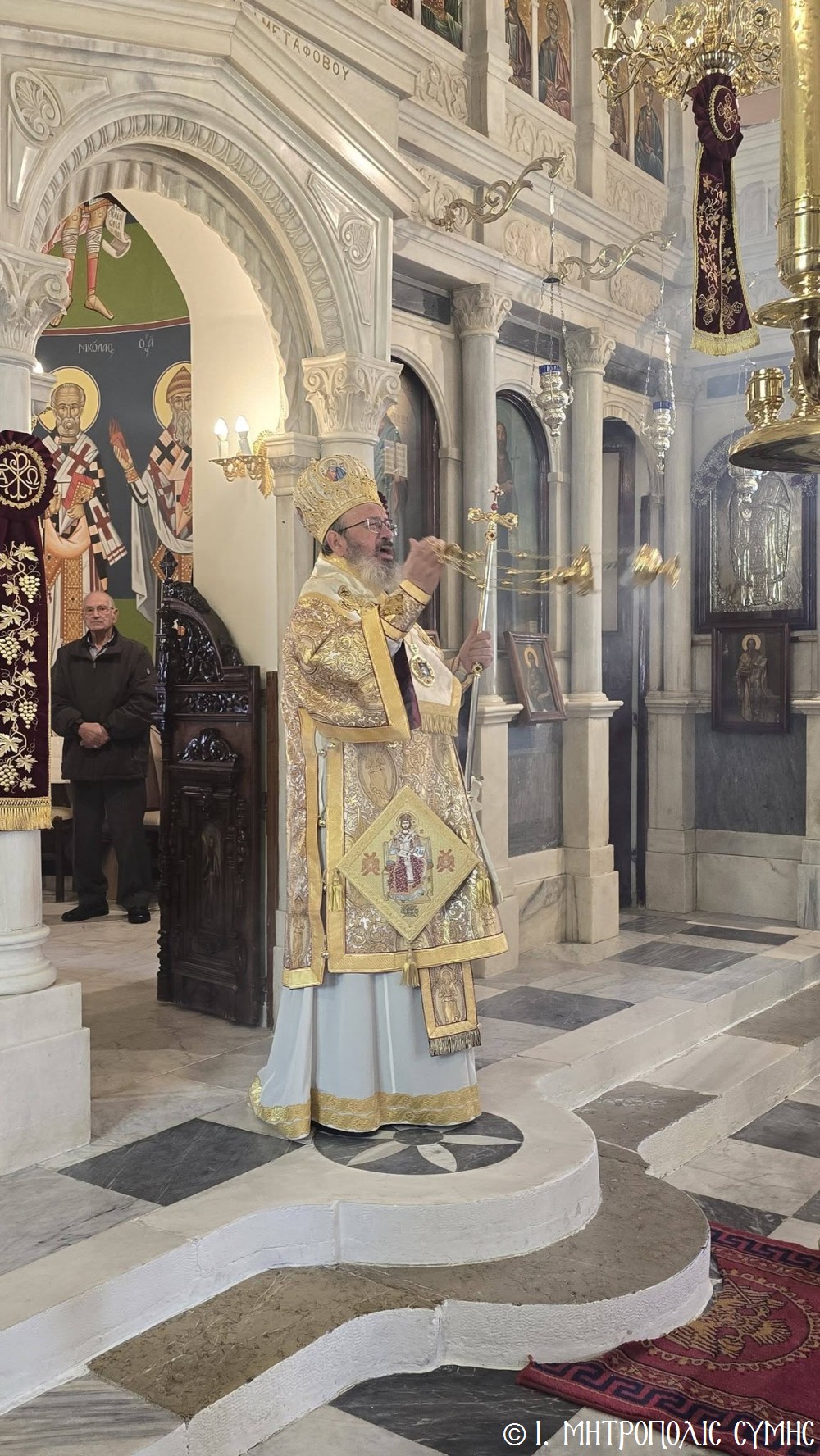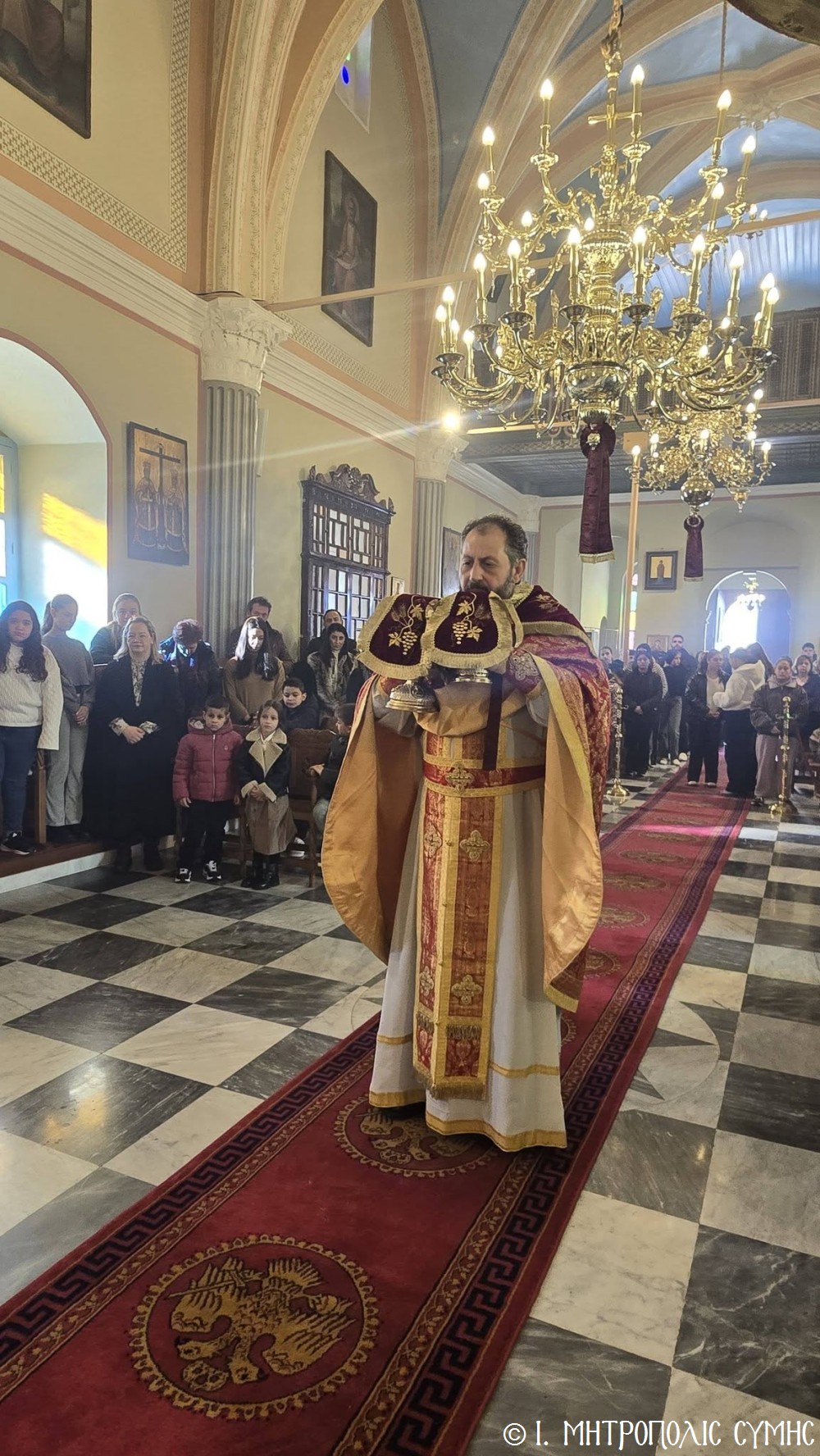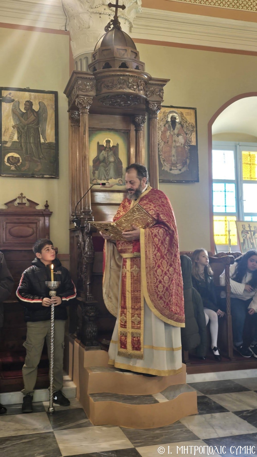 Κατά τήν ἀπόλυση τῆς Θείας Λειτουργίας ὁ Θεοφιλέστατος κ. Ἀντώνιος, εὐχήθηκε τά δέοντα σέ ἐκπαιδευτικούς καί μαθητές καί μετέφερε σέ ὅλους τήν πατρική ἀγάπη τοῦ Σεβασμιωτάτου Μητροπολίτου Σύμης κ. Χρυσοστόμου.