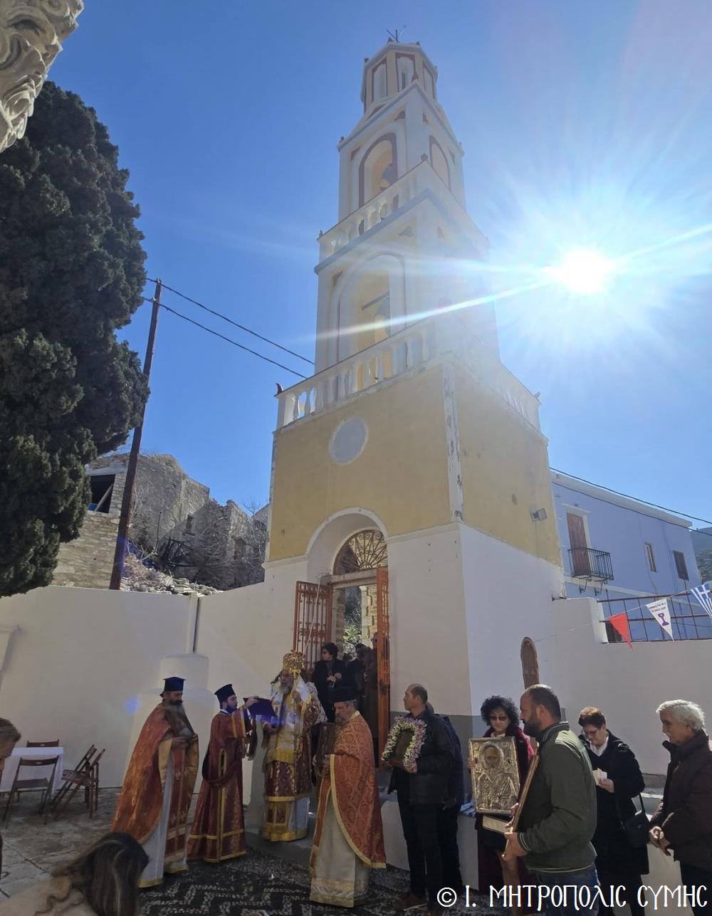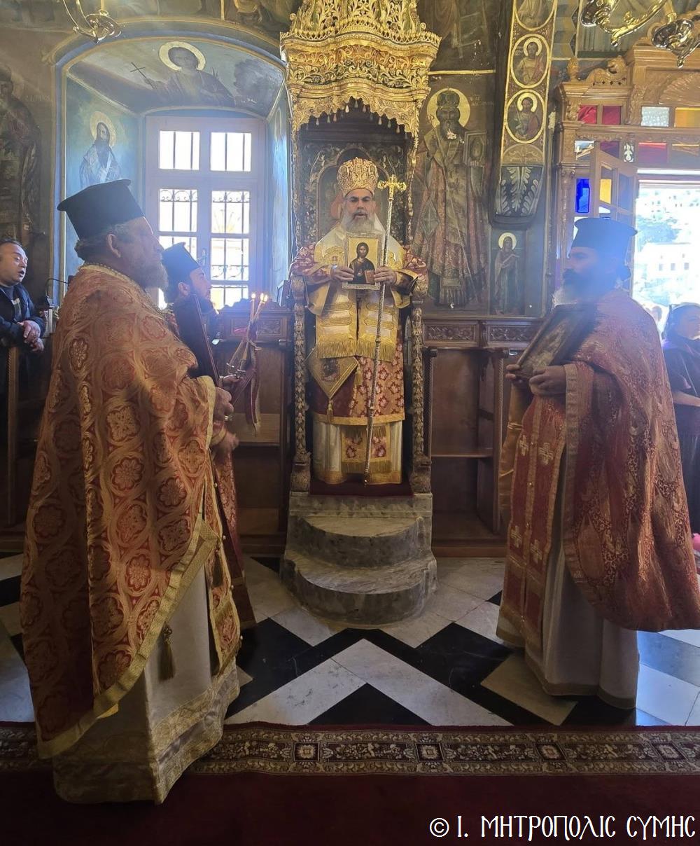 Σήμερα 1η Μαρτίου 2026, Α΄ Κυριακή τῶν Νηστειῶν, ἡ ἐπιλεγομένη τῆς Ὀρθοδοξίας, ἑορτάστηκε μέ σεμνοπρέπεια καί τήν δέουσα λαμπρότητα στήν Ἱερά Μητρόπολή μας ὁ θρίαμβος τῆς Ὀρθοδοξίας, μέ ἐπίκεντρο τόν Ἐνοριακό Ἱ. Ναό Ἁγίου Νικολάου Ἄνω Χώρας Σύμης, προεξάρχοντος τοῦ Σεβ. Μητροπολίτου μας κ. Χρυσοστόμου καί συλλειτουργούντων τοῦ Οἰκονόμου π. Ἐλευθερίου Ὀθείτη, τοῦ Πρεσβυτέρου π. Γεωργίου Κακακιοῦ καί τοῦ Ἱεροδιακόνου π. Παύλου Τερεζάκη.