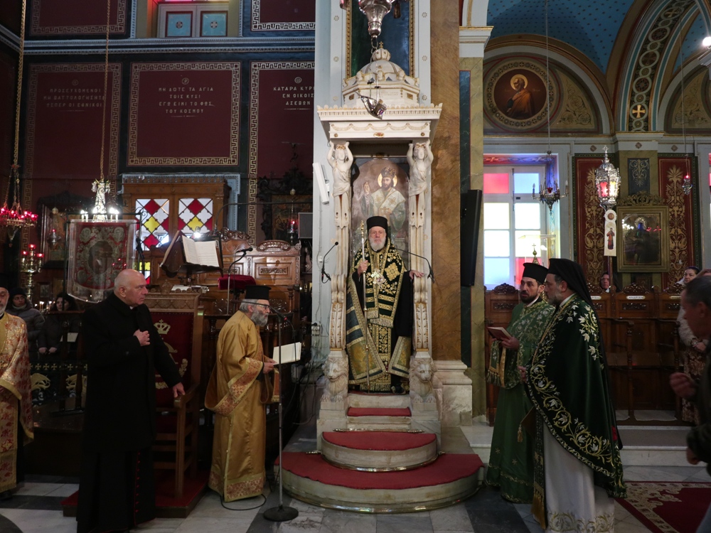 Ο Σεβασμιώτατος κ. Δωρόθεος Β' σήμερα το πρωί, στον Καθεδρικό Ιερό Ναό του Αγίου Νικολάου Ερμουπόλεως, προέστη της Δοξολογίας επί τω νέω έτει, παρουσία του Τοποτηρητού της Καθολικής Επισκοπής Σύρου, των τα πρώτα φερόντων στην Αποκεντρωμένη Διοίκηση, την Περιφέρεια Ν. Αιγαίου και τον Δήμο Σύρου - Ερμούπολης, των Διοικητών των Στρατιωτικών Αρχών, των Σωμάτων Ασφαλείας και των Πυροσβεστικών Υπηρεσιών, εκπροσώπων Φορέων και Οργανώσεων και πολλών πιστών.
