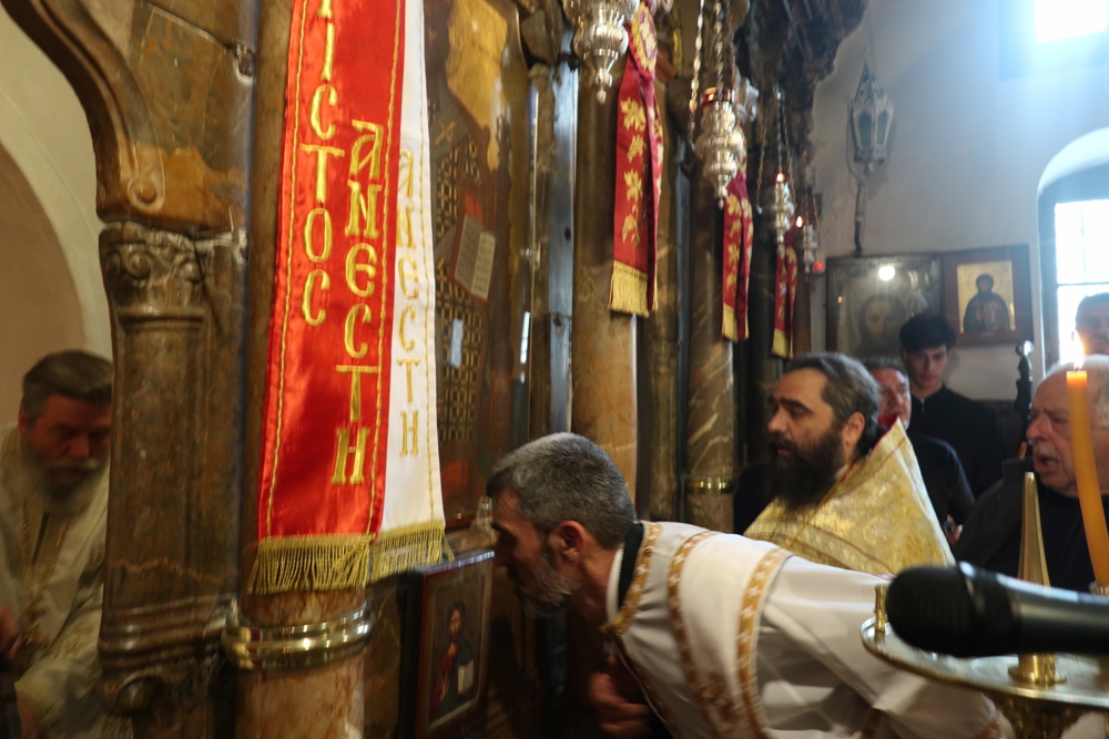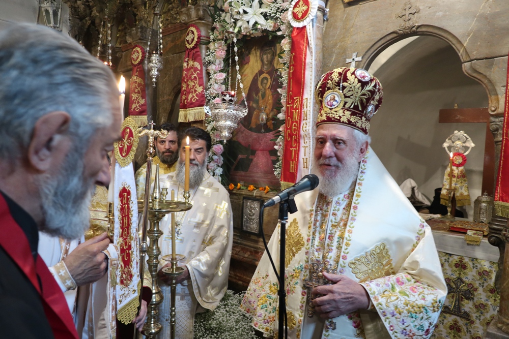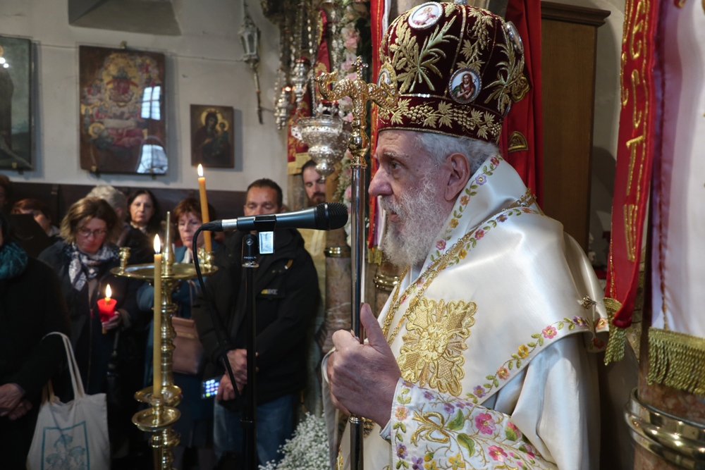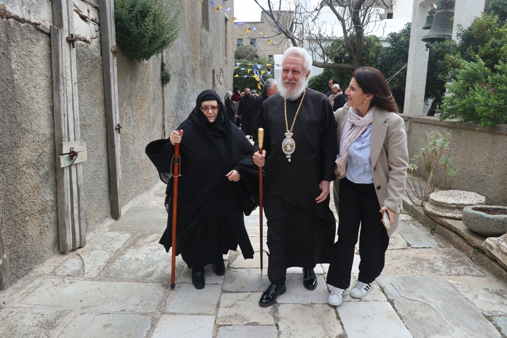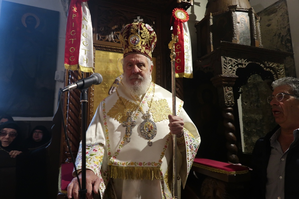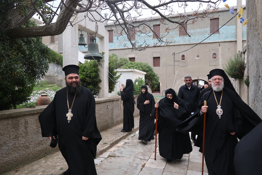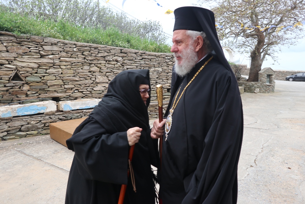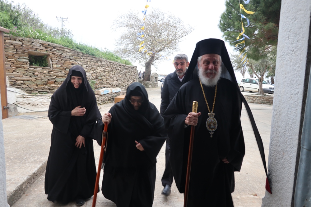 Προσέτι, ευχαρίστησε την Ηγουμενεύουσα Μοναχή Παρθενία για τους ανύστακτους κόπους και την κοπιώδη μέριμνά της για την Ιερά Μονή, την Ηγουμένη Μελάνη και τις Μοναχές από την Ιερά Μονή Πανοράματος, οι οποίες,όπως κάθε χρόνο, συνδράμουν στις Ακολουθίες της Μεγάλης Εβδομάδος και στην προετοιμασία της Μονής για την ετήσια Πανήγυρή της και όλους τους εκκλησιασθέντες Ανδρίους για τη στήριξή τους προς τη Μονή, προς τους οποίους απηύθυνε πασχάλιες ευχές.