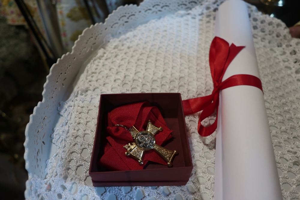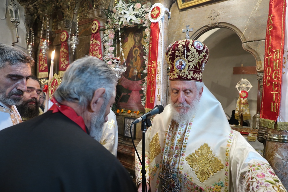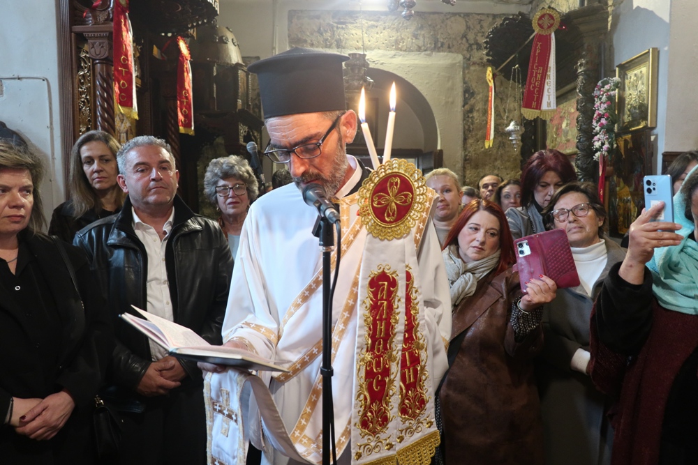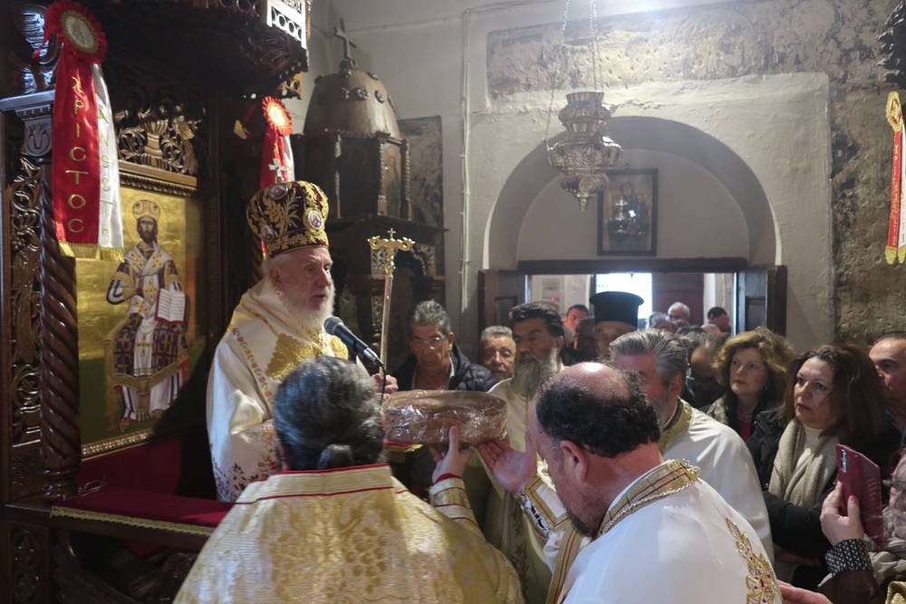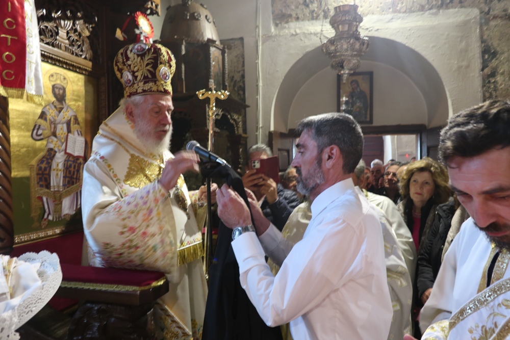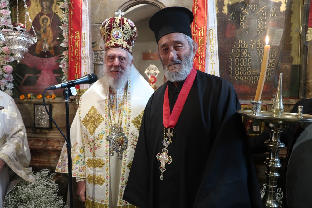 Προ δε του πέρατος της Θείας Λειτουργίας απένειμε το Μετάλλιο της Ιεράς Μητροπόλεως στον Συνταξιοδοτηθέντα Πρωτοπρ. Δημήτριο Μακρίνα.