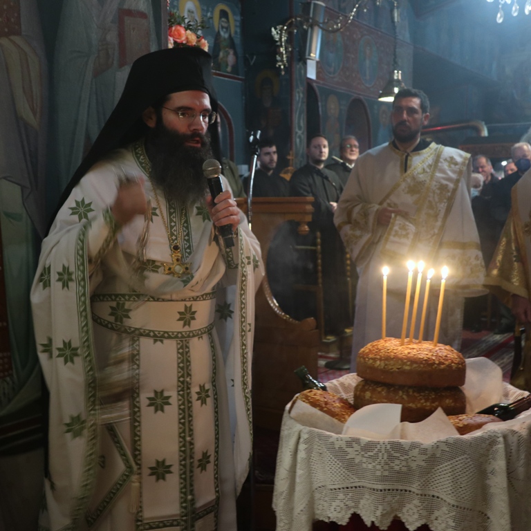 Ευχαρίστησε τους παρισταμένους πιστούς για την αγάπη τους προς τον Ιερό Ναό, απο τον οβολό των οποίων προς αυτόν ενισχύεται, μαζί με τη συνεισφορά της Ιεράς Μητροπόλεως το έργο της Φοιτητικής Εστίας και ευχήθηκε σε όλους να έχουν σύνοικο και συγκάτοικό τους τον Χριστό, όπως ακριβώς η σήμερα τιμώμενη Οσία Ξένη, από τον Οποίο να αρύονται δύναμη για να αντιμετωπίζουν τις συχνές δυσκολίες της καθημερινότητος.