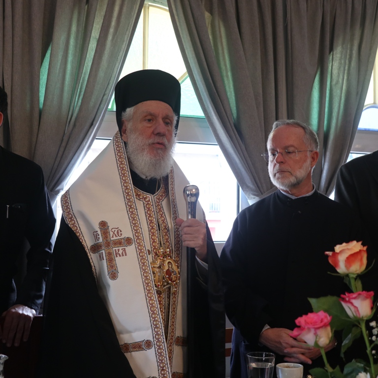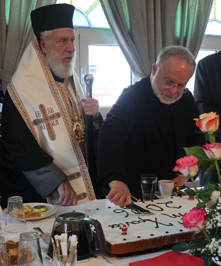 Στη συνέχεια, μετέβη στην παρακείμενη Φοιτητική Εστία της Ιεράς Μητροπόλεως, όπου ευλόγησε την Αγιοβασιλειόπιτα, για τους φιλοξενουμένους στην Εστία φοιτητές και φοιτήτριες, συνεχάρη τον Διευθυντή της Εστίας, Αρχιμ. Μελέτιο Ζαχαρόπουλο, και τους συνεργάτες του, για το σημαντικό έργο που προσφέρει στην Εστία και στους διαμένοντες σ' αυτήν νέους και νέες, στους οποίους ευχήθηκε υγεία και καλή πρόοδο στις σπουδές τους.