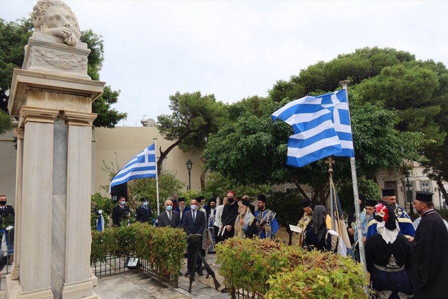 Η Εθνική Εορτή της 28ης Οκτωβρίου τιμήθηκε σήμερα στη Σύρο, με δοξολογία, που τελέσθηκε στον Ιερό Καθεδρικό Ναό του Αγίου Νικολάου Ερμουπόλεως, χοροστατούντος του Σεβασμιωτάτου κ. Δωροθέου Β' , συμπαραστατουμένου από τον τελεταρχουντα Αρχιερατικό Επίτροπο Σύρου και τον ιερό Κλήρο της νήσου, με την παρουσία του ΡΚαθολικού Εισκόπου κ. Πέτρου, του Χωρικού Αντιπεριφερειάρχη Κυκλάδων κ. Γ. Λεονταρίτη, του Δημάρχου Σύρου-Ερμούπολης κ. Νικ. Λειβαδάρα, Περιφερειακών και Δημοτικών Συμβούλων, των Διοικητών των Περιφερειακών Υπηρεσιών της Ελληνικής Αστυνομίας, της Πυροσβεστικής Υπηρεσίας και του Λιμενικού Σώματος, του Διοικητή του Αστυνομικού Τμήματος Σύρου, των Διοικητών των Στρατιωτικών Σχηματισμών Πεζικού και Ναυτικού των Δικαστικών, Εκπαιδευτικών, των Σημαιοφόρων των Σχολείων με τις σημαίες τους, μελών του Λυκείου Ελληνίδων, Προσκόπων, αντιπροσωπίας των Εφέδρων Αξιωματικών Στρατού και Αστυνομίας, εκπροσώπου του Συλλόγου Μικρασιατών Ερμούπολης με τη σημαία του Συλλόγου και εκπροσώπων τοπικών Φορέων και Οργανώσεων.