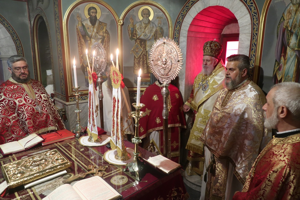 Ο Σεβασμιώτατος κ. Δωρόθεος Β’ ιερούργησε σήμερα το πρωί στον πανηγυρίζοντα Ιερό Κοιμητηριακό Ναό του Αγίου Γεωργίου Ερμουπόλεως, με τη λειτουργική συμμετοχή του Εφημερίου του Ιερού Ναού Αρχιμ. Δωροθέου Γάγγου και Εφημερίων της Σύρου, και την παρουσία του Αντιπεριφερειάρχη Κυκλάδων κ. Γ. Λεονταρίτη, του Αντιδημάρχου Σύρου – Ερμούπολης κ. Δημ. Κοσμά, του Στρατηγού Διευθυντού των Αστυνομικών Υπηρεσιών Ν. Αιγαίου, και πλήθους πιστών.