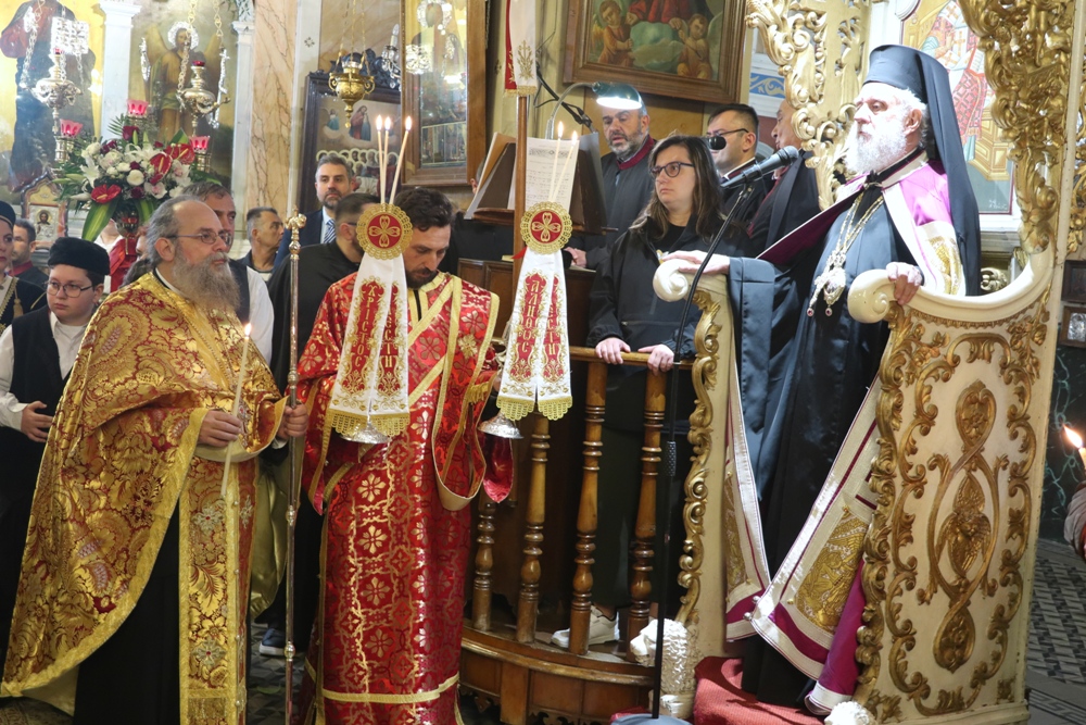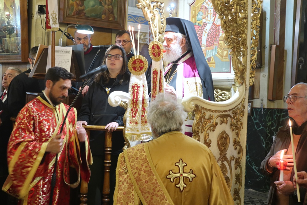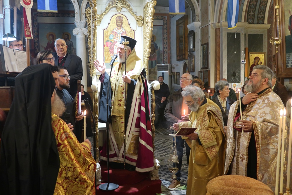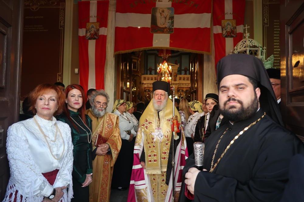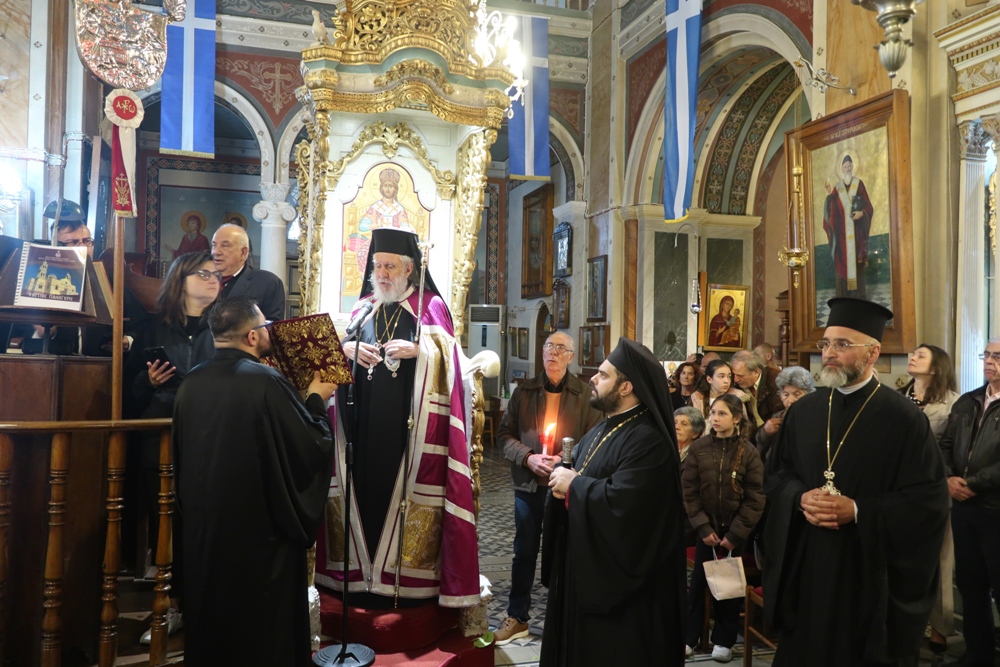 Ευχαρίστησε τον Αρχιμ. Ραφαήλ Κατακεχαγιά, μνησθείςτης κοινής διακονίας τους στην Ιερά Σύνοδο, και τον Ιεροψάλτη κ. Απόστολο Ντέτσικα, που τον συνόδευσε, συνεχάρη τον Πρόεδρο της Εκκλησιαστικής Επιτροπής του Ναού, Αρχιμ. Νικόλαο Γαβαλλά, ο οποίος επιμελήθηκε κατά τρόπο άψογο τις Εκδηλώσεις, και ευχήθηκε σε όλους έτη πολλά και Αναστάσιμα.