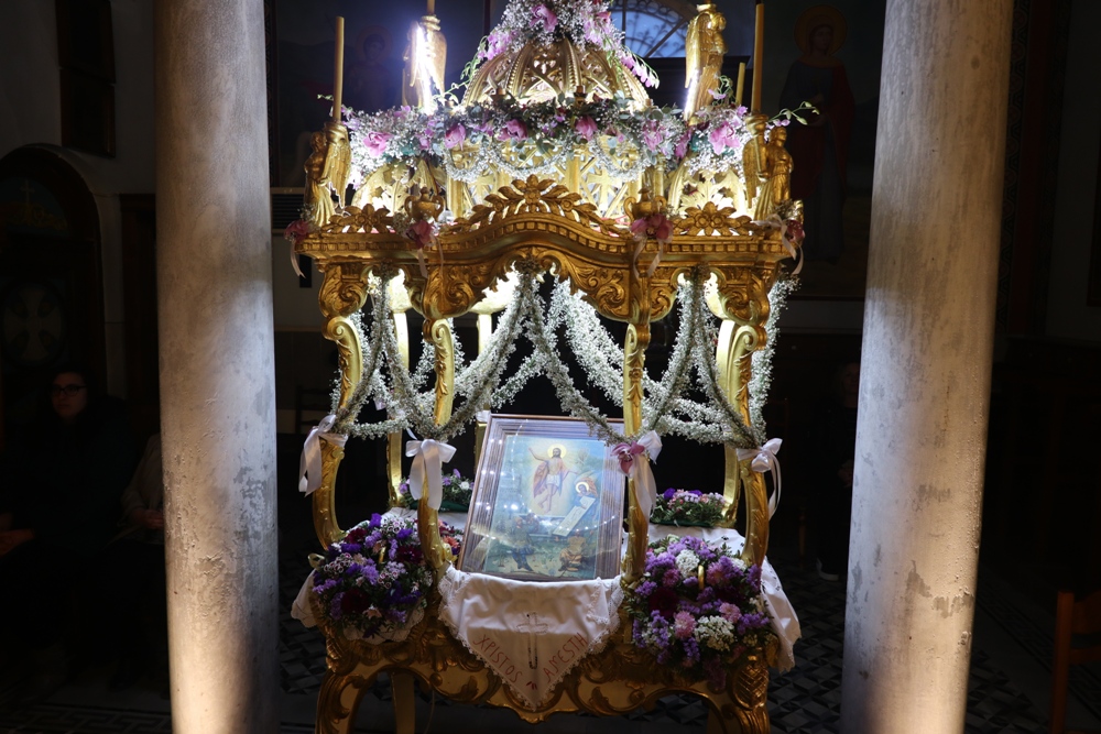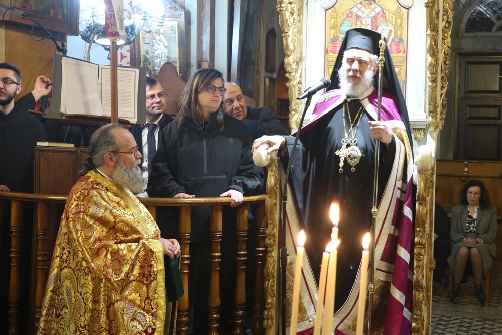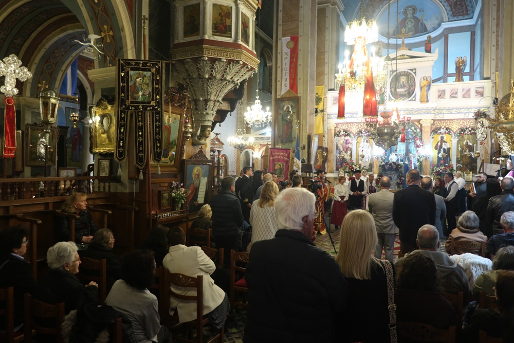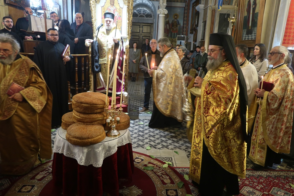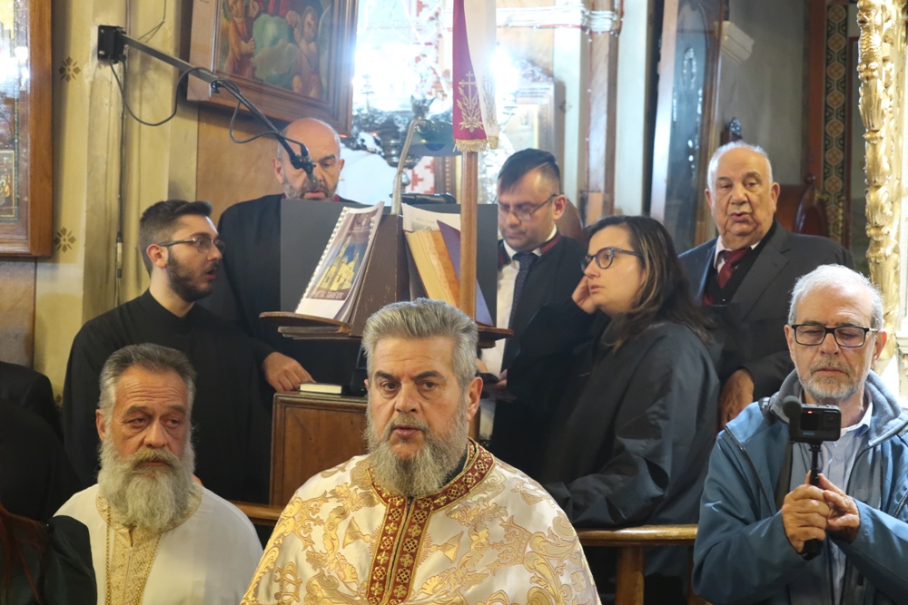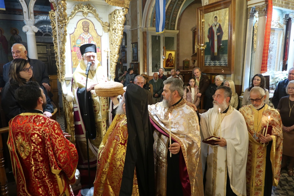 Ευχαρίστησε τον Αρχιμ. Ραφαήλ Κατακεχαγιά, μνησθείςτης κοινής διακονίας τους στην Ιερά Σύνοδο, και τον Ιεροψάλτη κ. Απόστολο Ντέτσικα, που τον συνόδευσε, συνεχάρη τον Πρόεδρο της Εκκλησιαστικής Επιτροπής του Ναού, Αρχιμ. Νικόλαο Γαβαλλά, ο οποίος επιμελήθηκε κατά τρόπο άψογο τις Εκδηλώσεις, και ευχήθηκε σε όλους έτη πολλά και Αναστάσιμα.