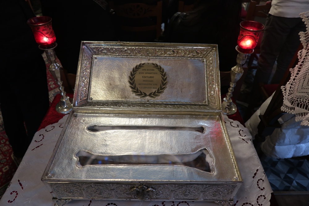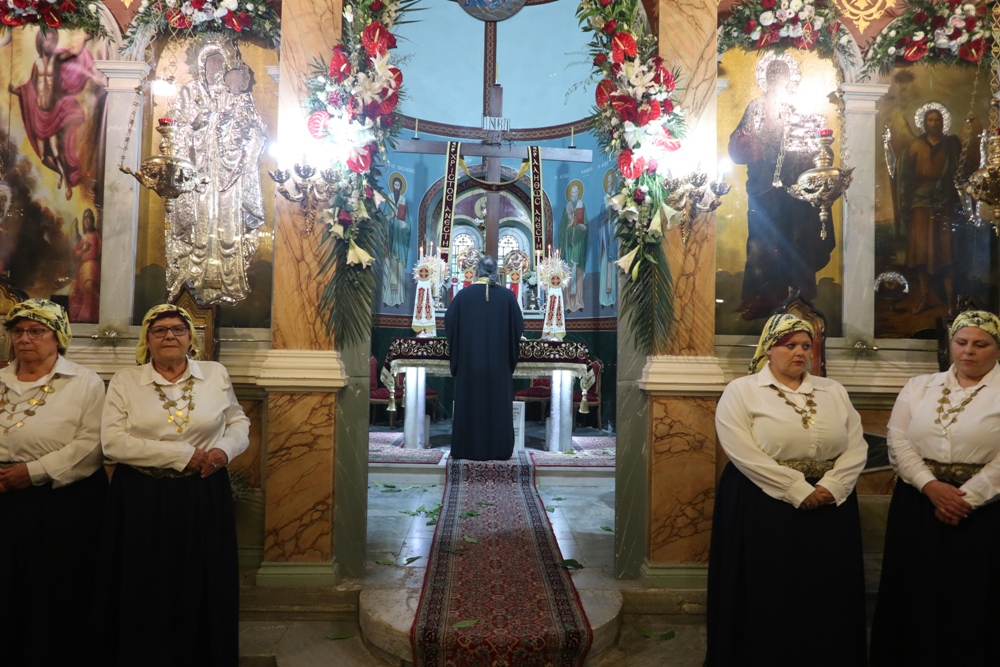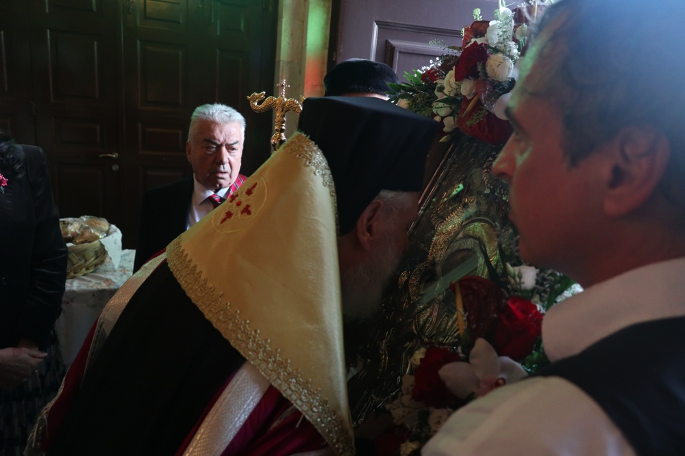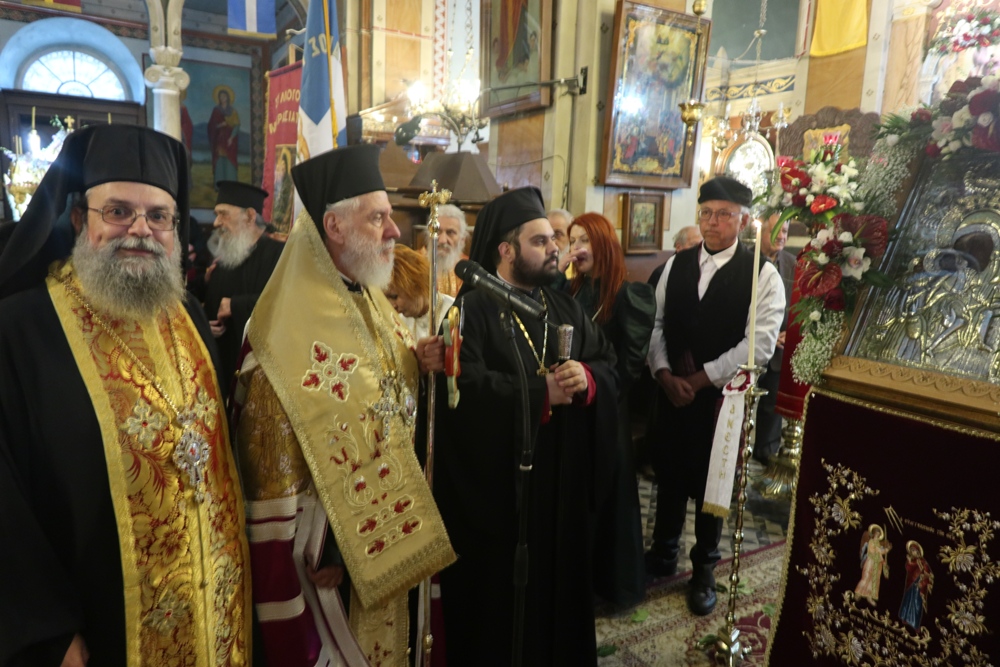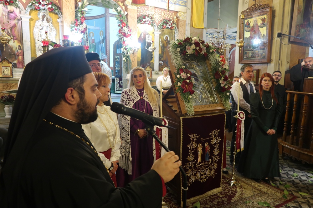 Προ του πέρατος της Ακολουθίας, ο Σεβσσμιώτατος κ. Δωρόθεος Β’ επεσήμανε τον συμβολισμό της ελεύσεως της Αγίας Εικόνος στην Ερμούπολη, η οποία εορτάζει την 200ή επέτειο από την ονοματοδοσία της, υπογράμμισε ότι η προσφυγιά και οι περιπέτειες Εικόνος εκφράζουν τις περιπέτειες και τον πόνο της προσφυγιάς των οικιστών και ιδρυτών Ερμούπολης και τόνισε ότι με παρουσία Της στην Ερμούπολη και τη Σύρο, η Παναγία μας υπενθυμίζει ότι ποτέ δεν θα μας εγκαταλείψει ως άτομα και ως έθνος.