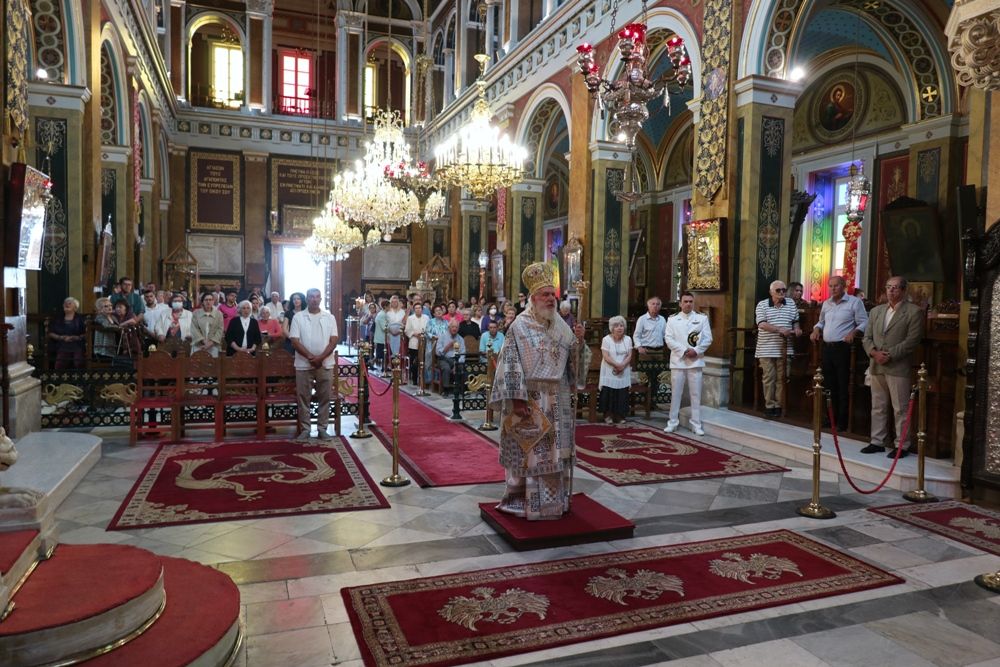 Το πρωί της Κυριακής 25 Μαίου 2025, στον Ιερό Ναό του Αγίου Νικολάου Ερμουπόλεως Σύρου, τελέσθηκε Αρχιερατική Θεία Λειτουργία,ιερουργούντος του Σεβασμιωτάτου κ. Δωροθέου Β' με τη συμμετοχή των Εφημέριων του Ναού, των Εφημερίων του Ιερού Ναού Αναστασεως, του Προϊσταμένου του Ιερού Ναού Αγίου Φωτίου Θεσσαλονίκης, Αρχιμ. Μακαρίου Τσιμέρη, και των Διακόνων, επί τη συμπληρώσει 89 ετών από της Ευρέσεως της Εικόνος του Αγίου Δημητρίου, η οποία είχε μεταφερθεί αφ’ εσπέρας, δίχα πομπής από τον Ιερό Ναό του Αγίου Δημητρίου.