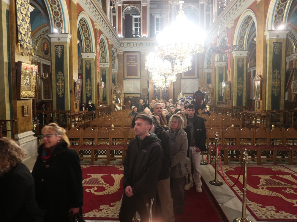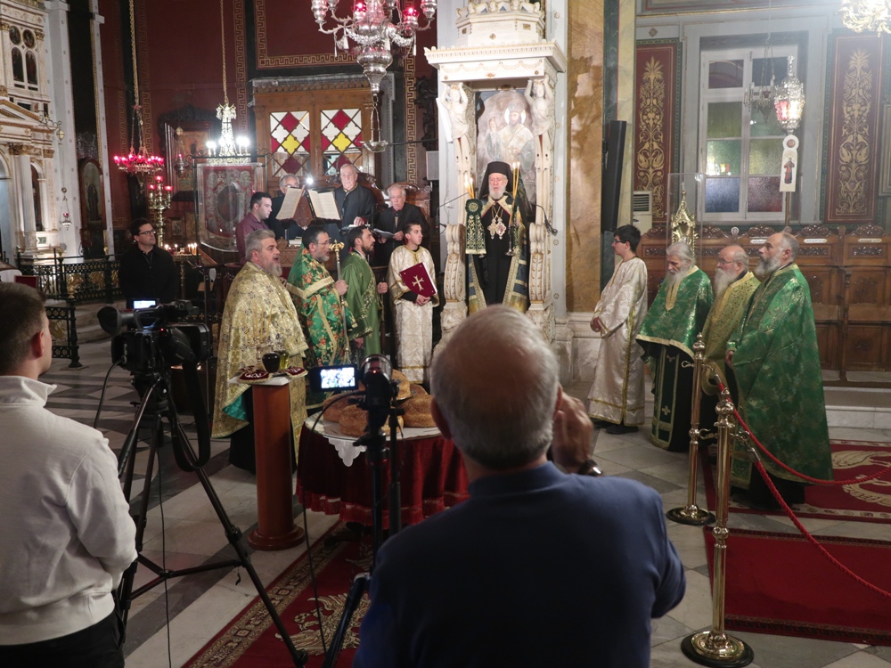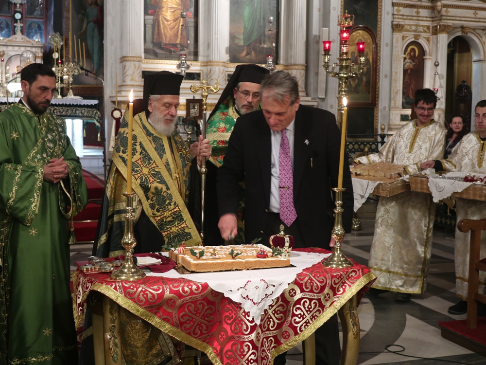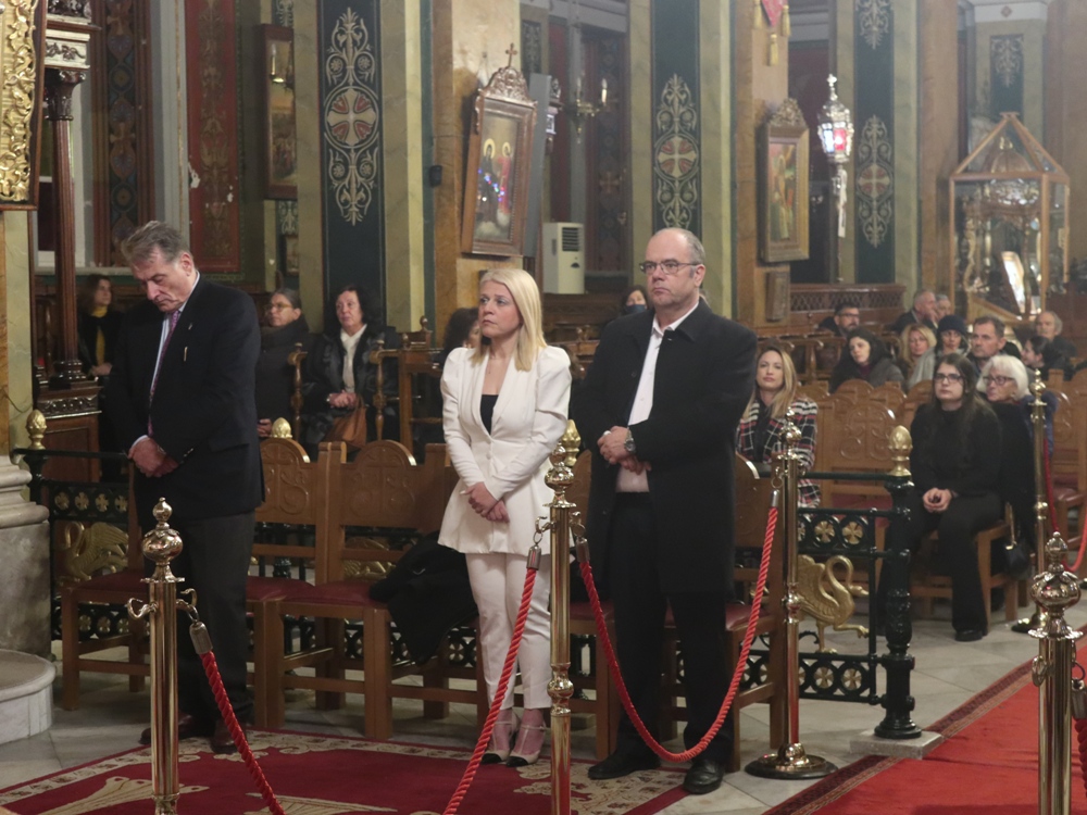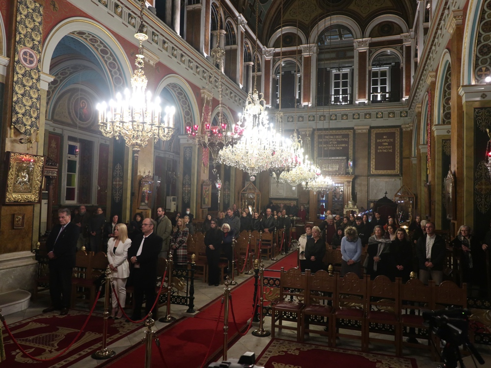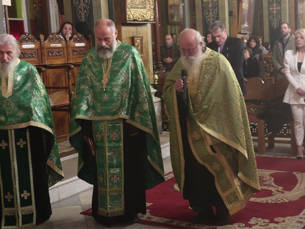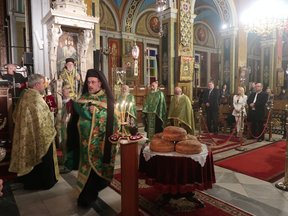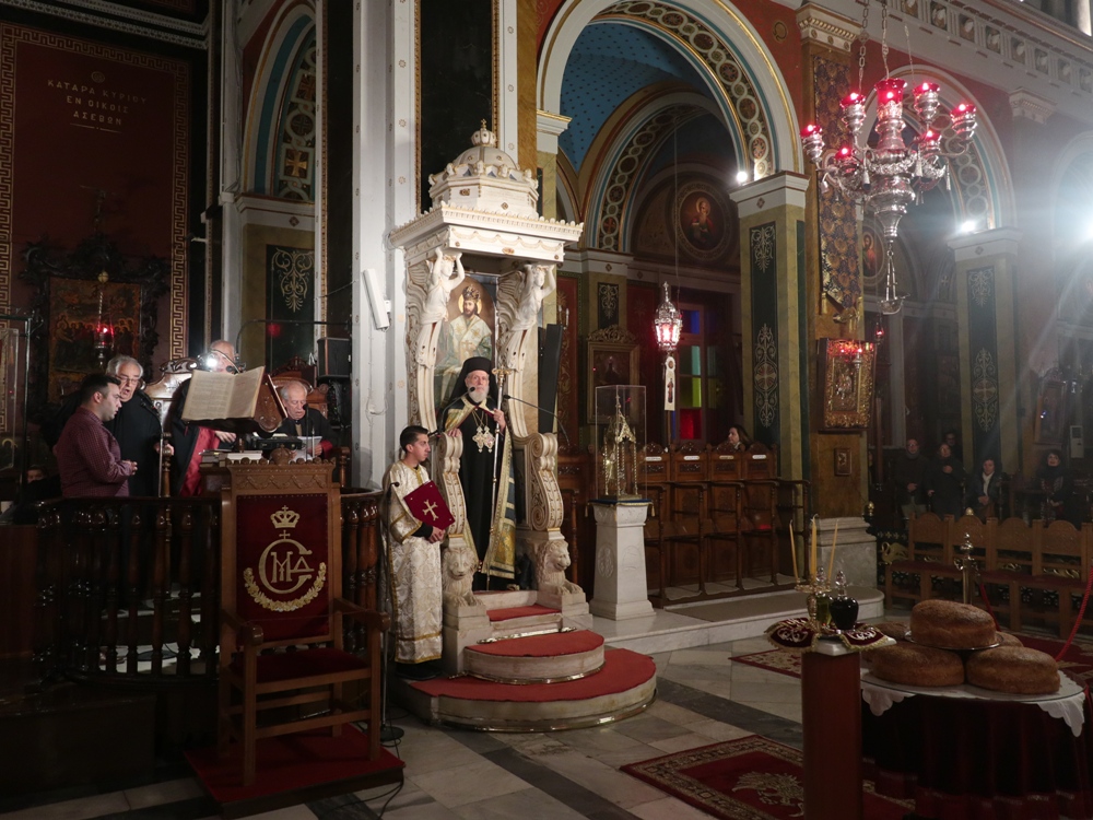 Τέλος, ευχαρίστησε τους Εφημερίους του Ναού, Αρχιμ. Βενέδικτο Φραγκογιάννη και Πρωτοπρ. Λουκά Βασάλο, τους Ιεροψάλτες, και όλους τους παρισταμένους, και ευχήθηκε σ’ αυτούς και, μέσω του Περιφερειακού Τηλεοπτικού Σταθμού «SYROS TV1», οποίος αναμετέδιδε απ’ ευθείας την Ακολουθία, στον Κλήρο και το λαό της Ιεράς Μητροπόλεως υγεία, πρόοδο και ευημερία, μακριά από πολέμους και βίαιες καταστάσεις.