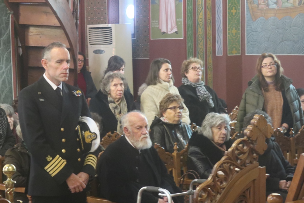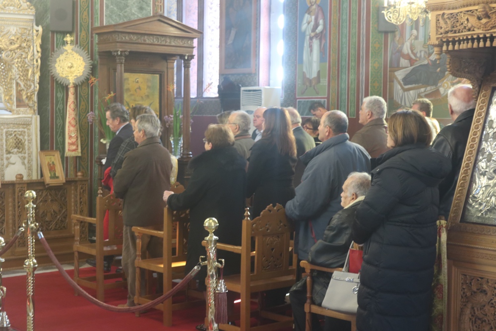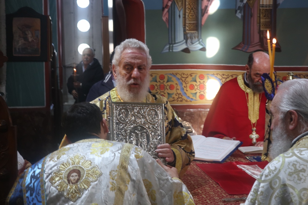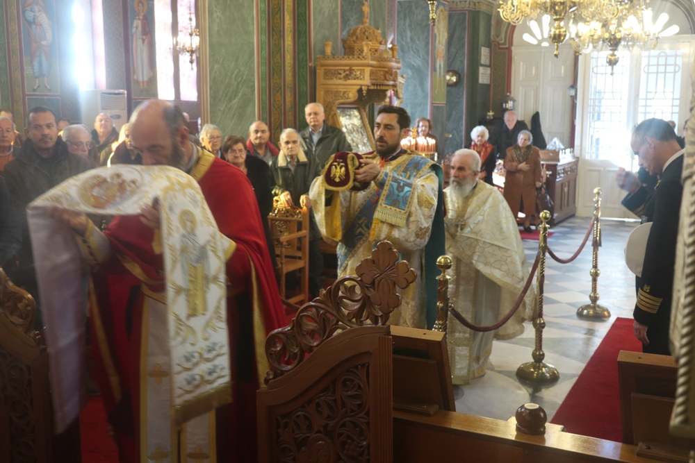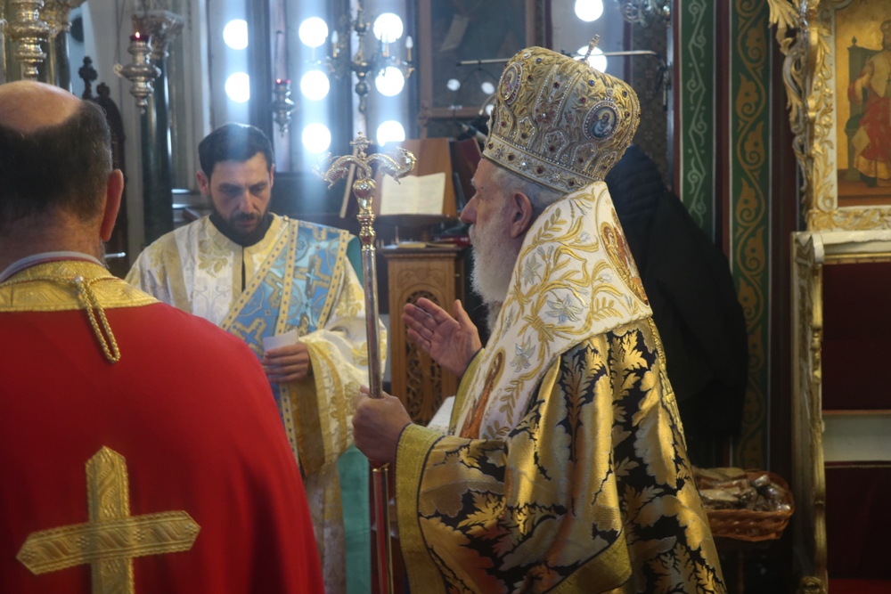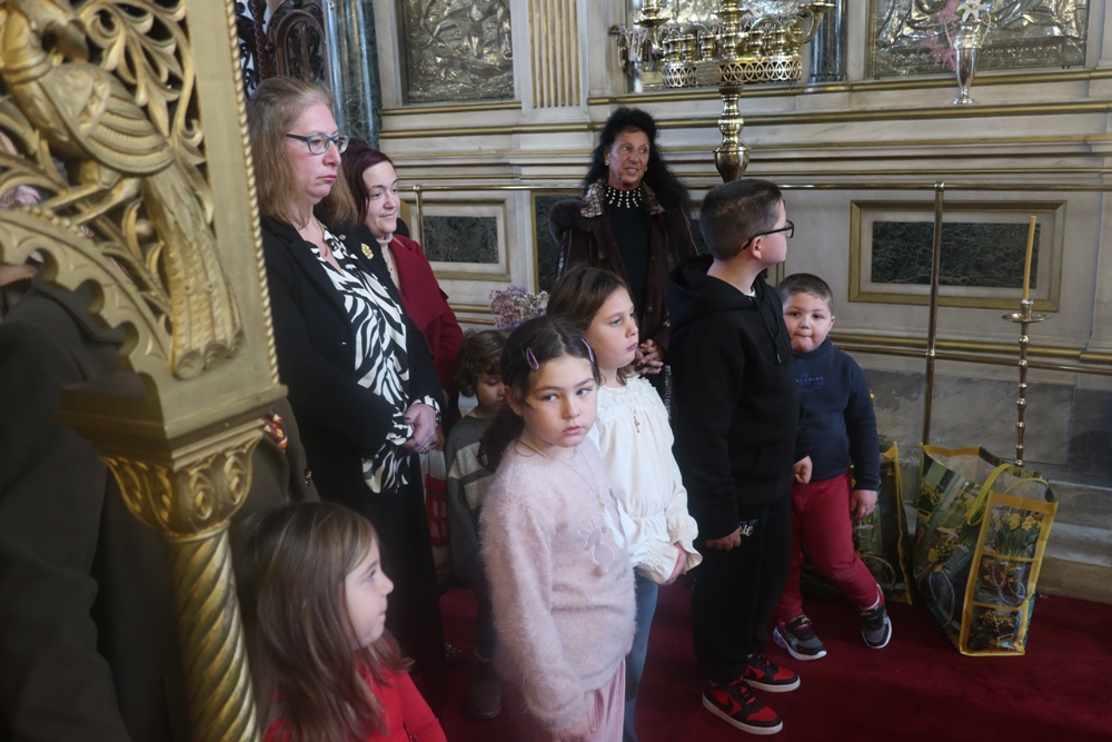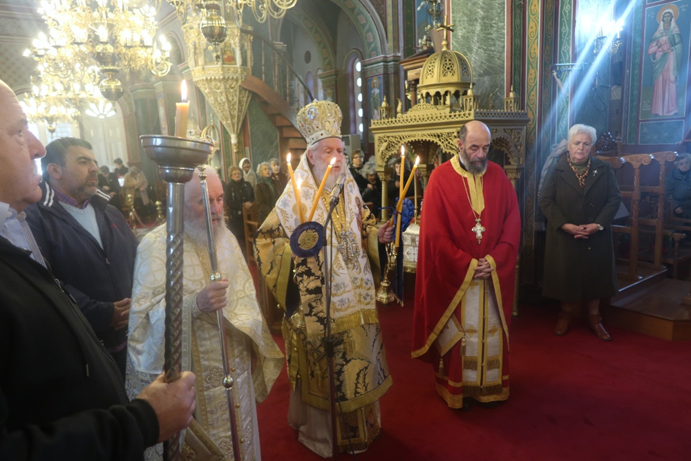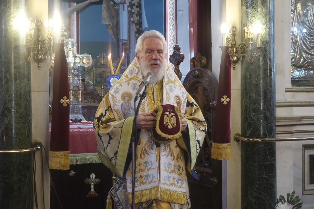 Τέλος, ευλόγησε την πίτα του Αγίου Βασιλείου, ενώ τα παριστάμενα παιδιά έψαλλαν τα κάλαντα, ευχαρίστησε τον Εφημέριο του Ναού για την προετοιμασία της Εκδηλώσεως, και διένειμε στους παρισταμένους ευλογίες και δώρα.