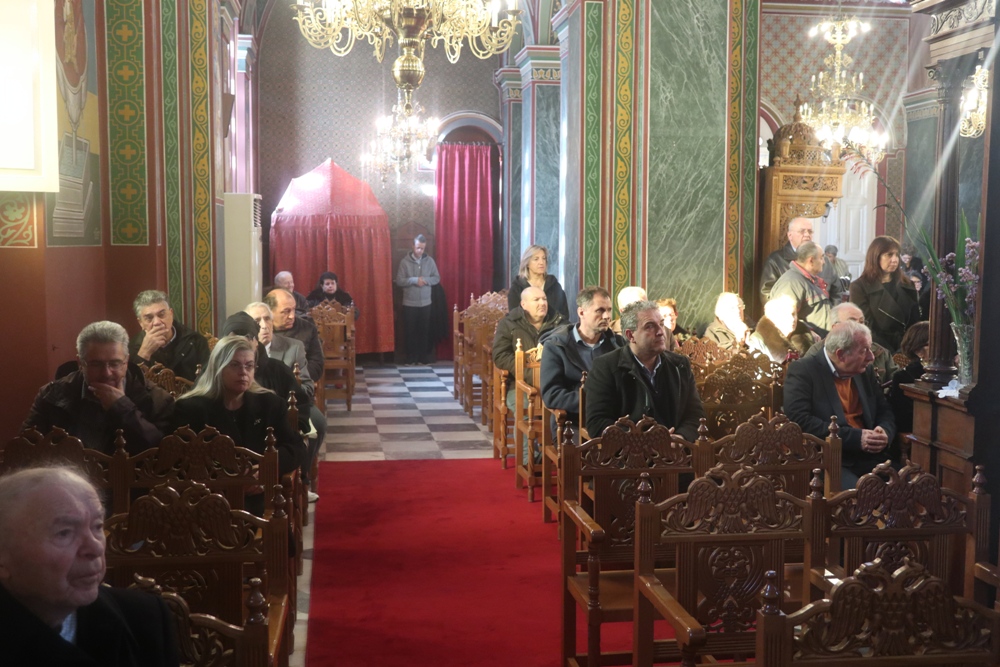Προ του πέρατος της Θείας Λειτουργίας, εκπρόσωπος του Προέδρου του Συλλόγου Ιεροψαλτών Άνδρου «Η ΠΑΝΑΧΡΑΝΤΟΣ» κ . Λιοπύρου, ο οποίος λόγω δυσμενών καιρικών συνθηκών δεν κατέστη δυνατόν να παραστεί, ανέγνωσε εγκάρδιο χαιρετισμό προς τον Σεβασμιώτατο κ. Δωρόθεο Β’ , με τον οποίο τον ευχαρίστησε για τη στήριξή του στο Σωματείο και ενημέρωνε ότι όλο και περισσότεροι Ανδριοι, και μάλιστα νέοι, προσέρχονται στις λειτουργούσες σχολές Ψαλτικής.