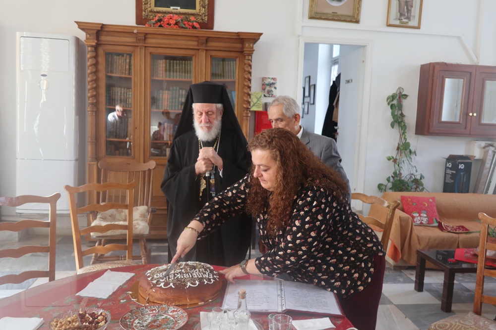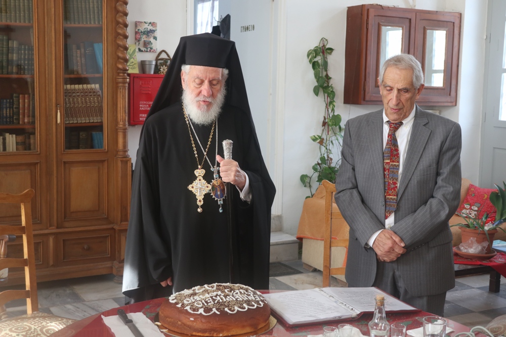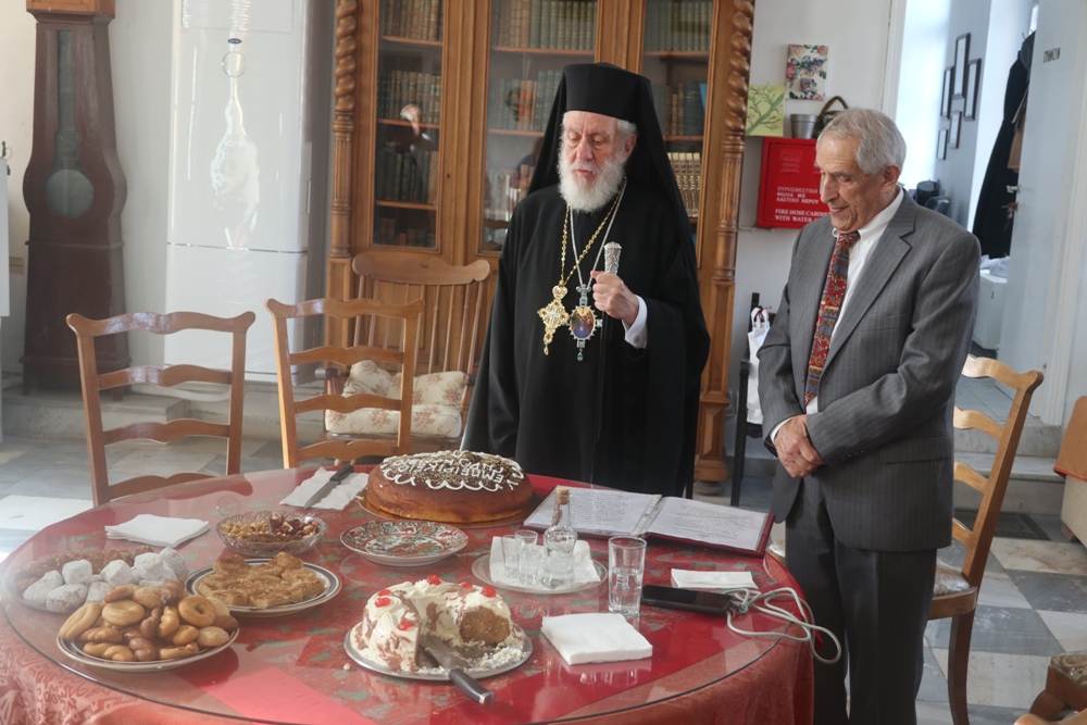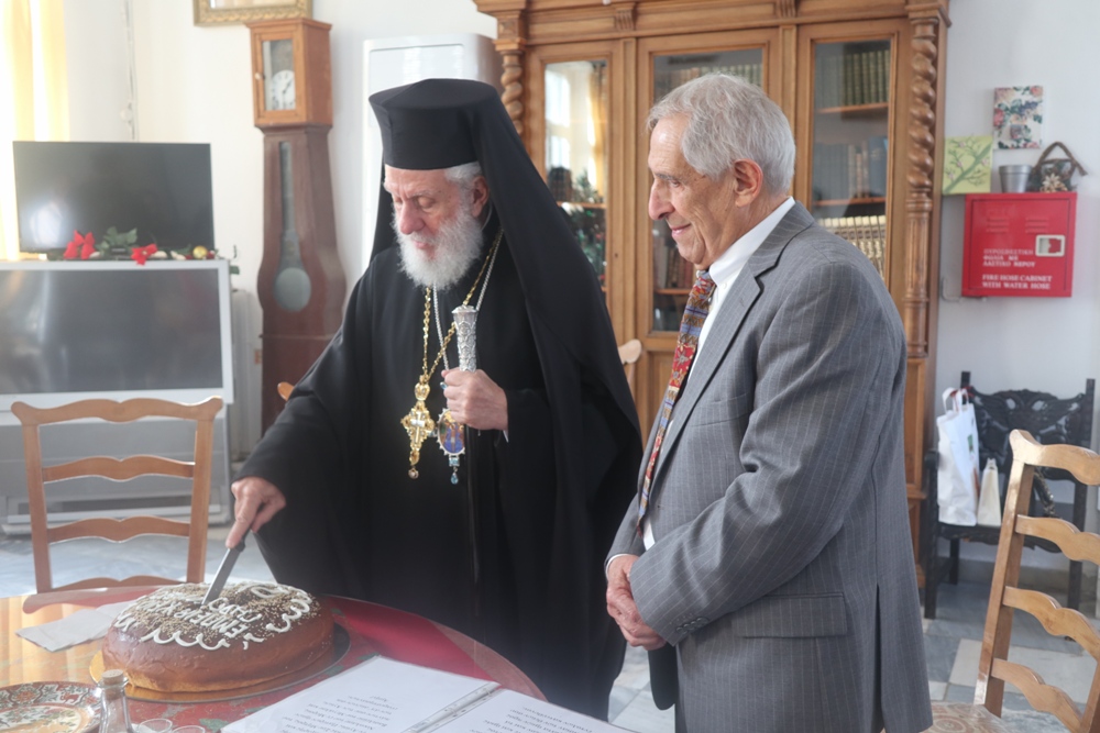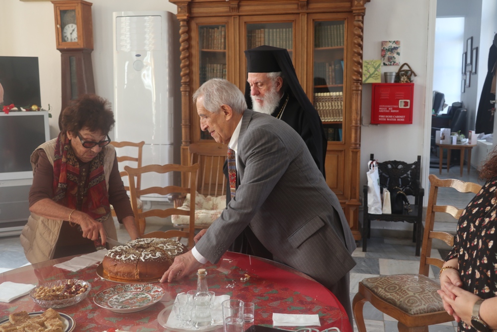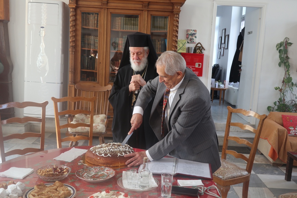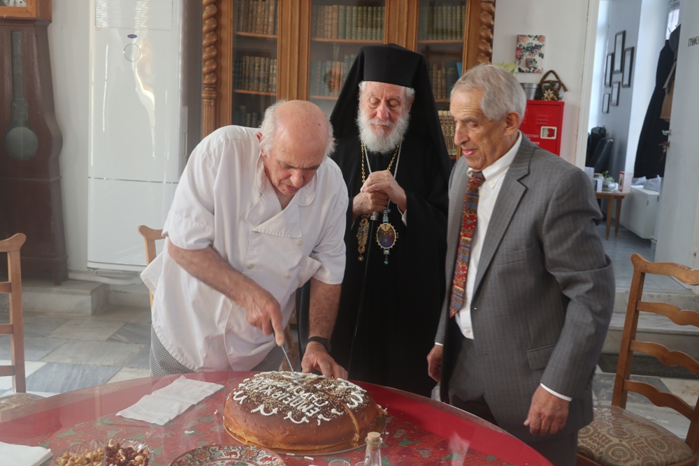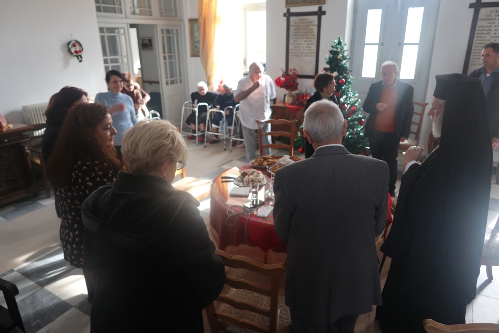 Κατόπιν μετέβη στο παρακείμενο Εμπειρίκειο Γηροκομείο της Άνδρου, όπου ευλόγησε την Αγιοβασιλειόπιττα, ευχήθηκε στους εκεί περιθαλπομένους γέροντες και γερόντισσες και συνεχάρη τον Ευεργέτη κ. Επαμεινώνδα Εμπειρίκο για την προσφορά του προς το Ίδρυμα.