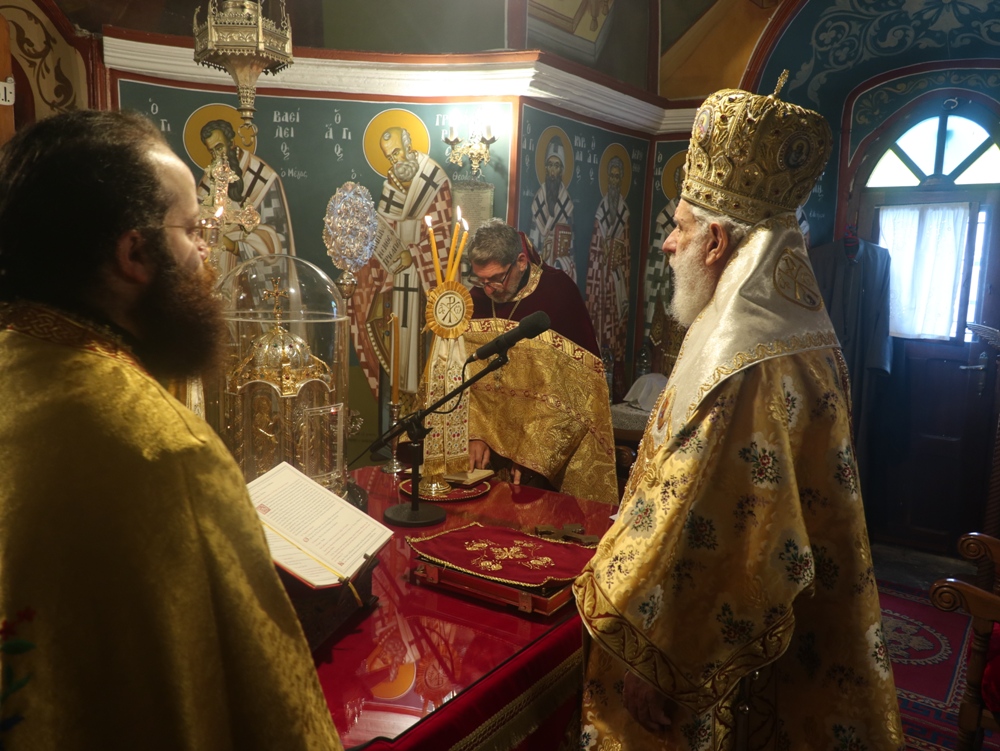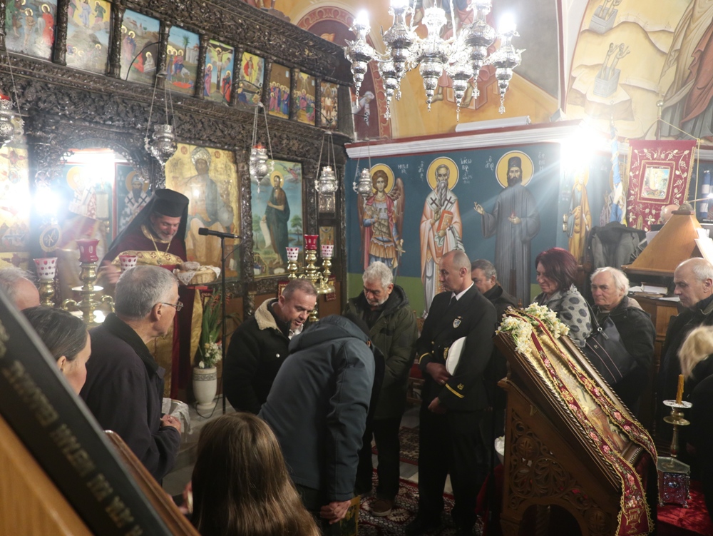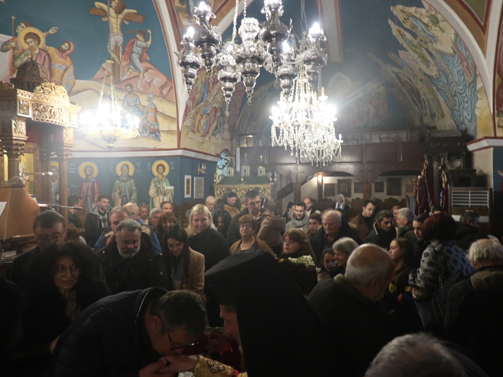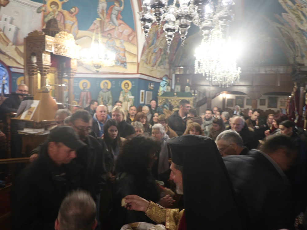 Ευχαρίστησε και συνεχάρη τον Εφημέριο του Ναού, Πρεσβύτερο Παναγιώτη Μπόμπα για τον προευτρεπισμό και την άρτια διοργάνωση της πανηγύρεως, τους Εφημερίους, τους Επιτρόπους, τους Ιεροψάλτες, και ευχήθηκε στο εκκλησίασμα για το αρξάμενο νέο έτος.