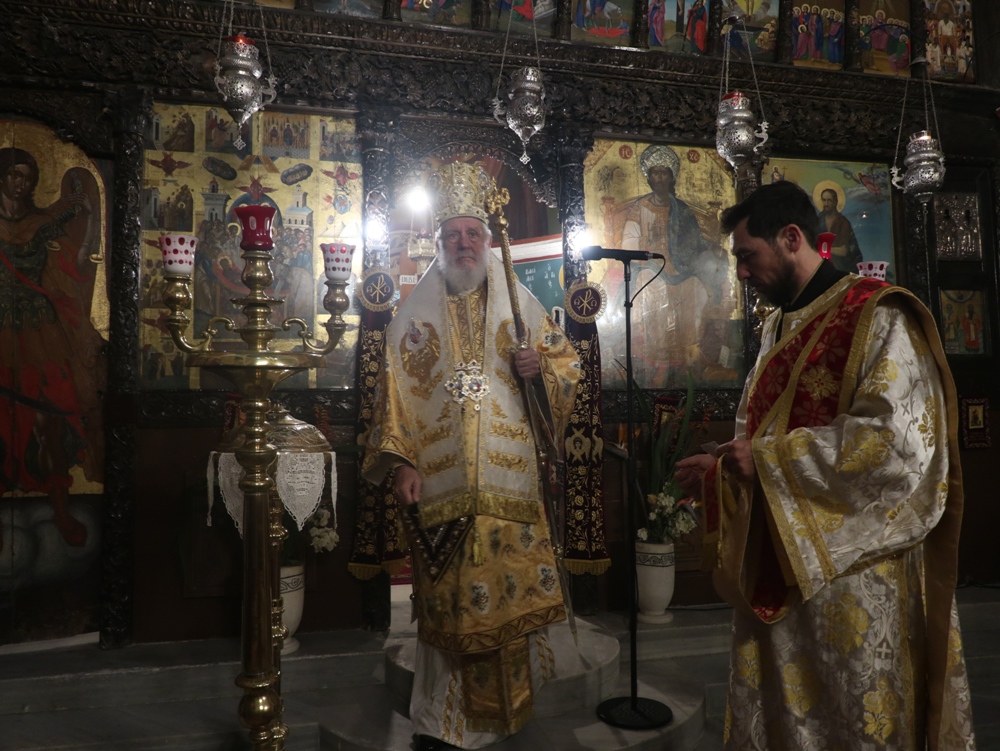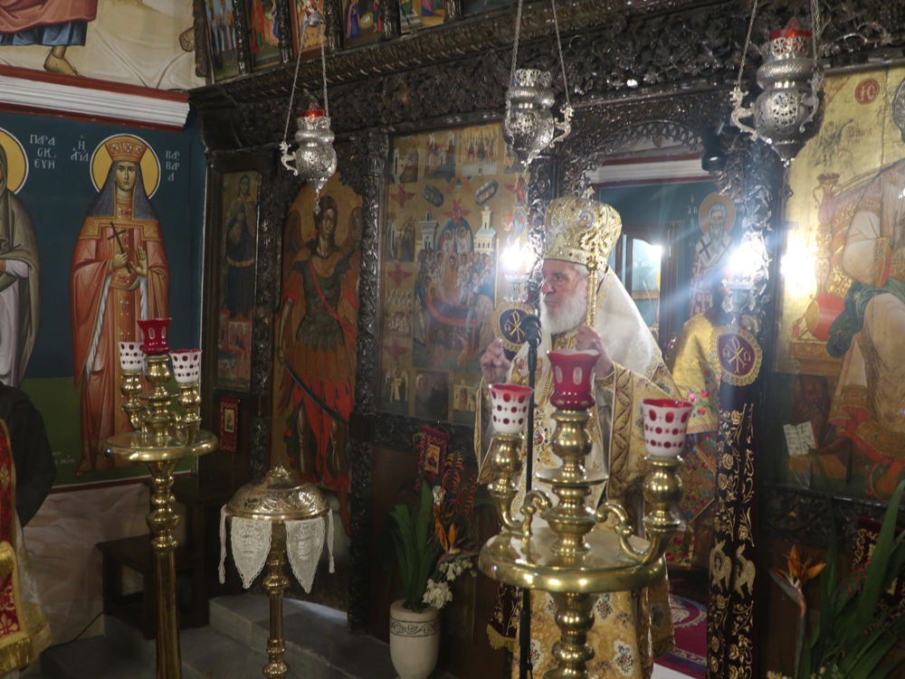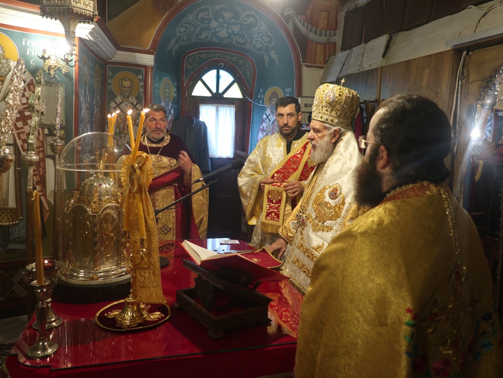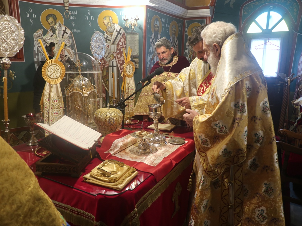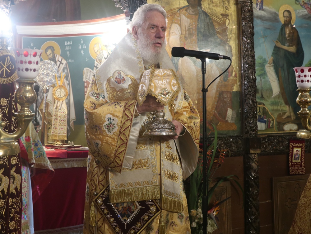 Ευχαρίστησε και συνεχάρη τον Εφημέριο του Ναού, Πρεσβύτερο Παναγιώτη Μπόμπα για τον προευτρεπισμό και την άρτια διοργάνωση της πανηγύρεως, τους Εφημερίους, τους Επιτρόπους, τους Ιεροψάλτες, και ευχήθηκε στο εκκλησίασμα για το αρξάμενο νέο έτος.