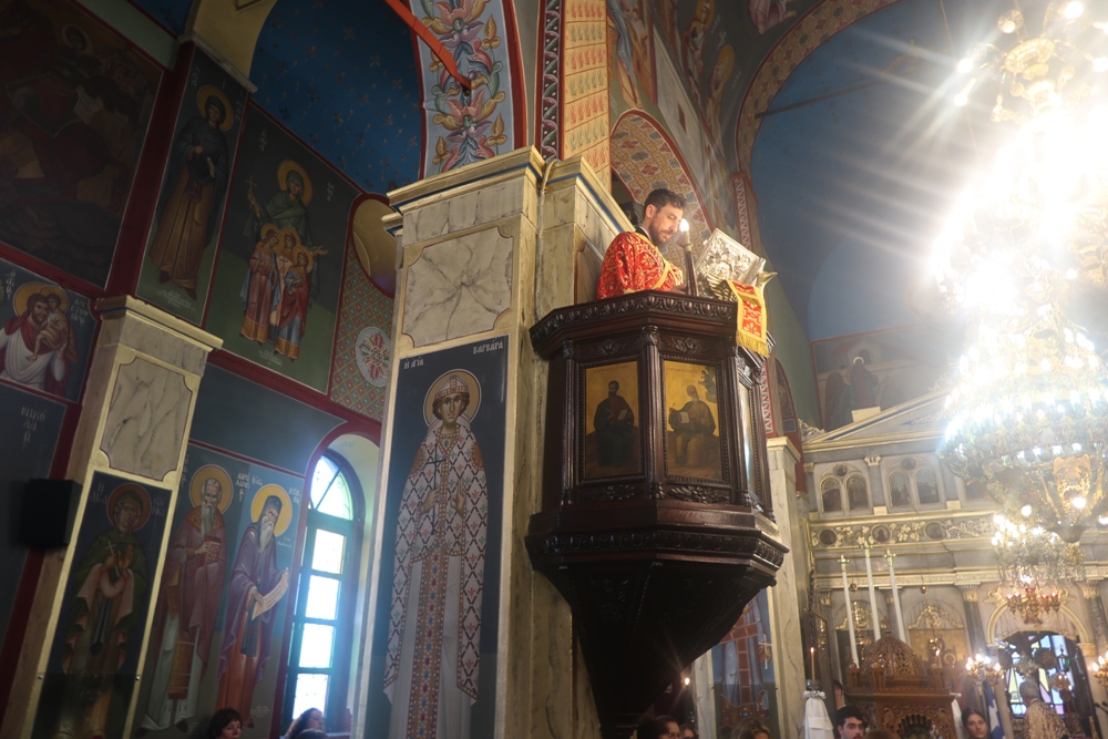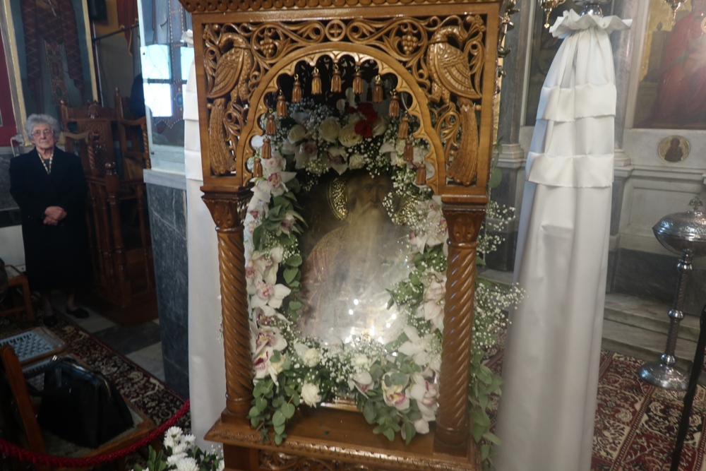 Στη συνέχεια, δια της κεντρικής πλατείας, η λιτανεία κατευθύνθηκε προς τον Ιερό Ναό του Αγίου Χαραλάμπους, στην Κάτω Χώρα, όπου, υπό καταρρακτώδη βροχή, εγένετο η Απόλυση.