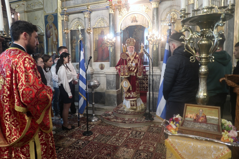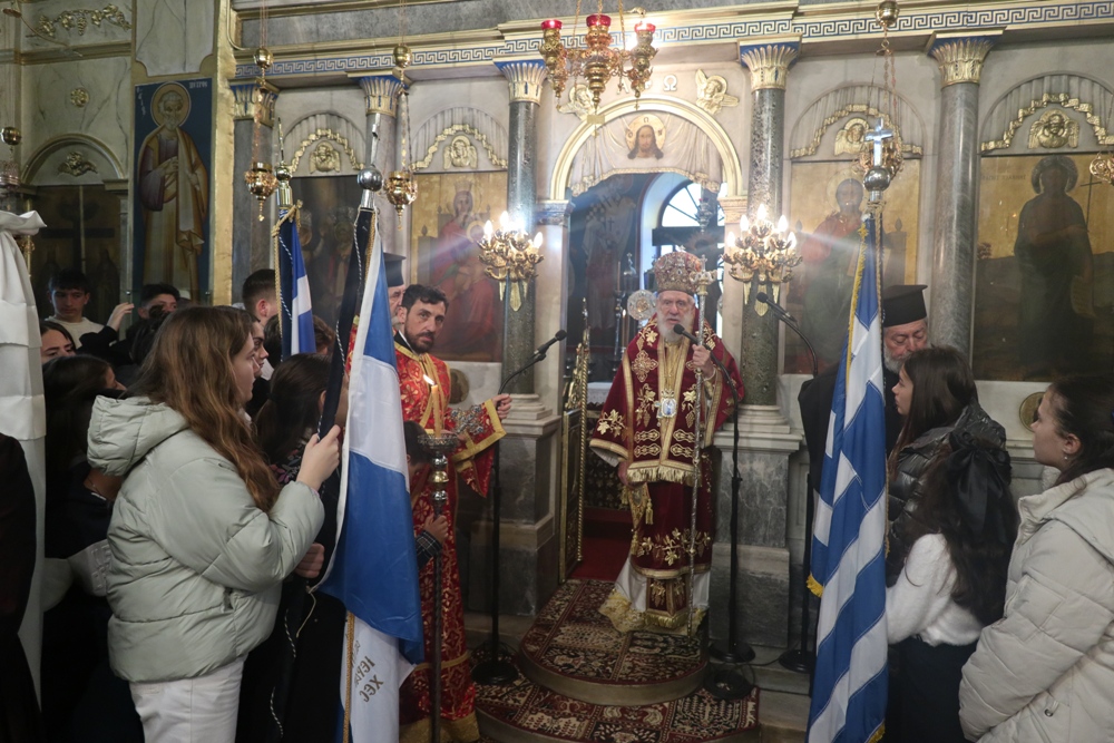 Ευχαρίστησε, τέλος, και συνεχάρη τον Αρχιερατικό Επίτροπο Κέας, Πρωτοπρ. Ελευθέριο Δεμένεγα, την Δήμαρχο Κέας, κα Αικατερίνη Βελισσαροπούλου, για την καλή τους συνεργασία, καρπός της οποίας υπήρξε η από κοινού σύνταξη Κανονισμού του Ιερού Προσκυνήματος Παναγίας Καστριανής, και τους παραστάντες Κείους και ιδιαίτερα τους εκπαιδευτικούς και τους μαθητές, για την ολόθυμη συμμετοχή τους στην Πανήγυρι, ευχηθείς για το αρξάμενο Τριώδιο.