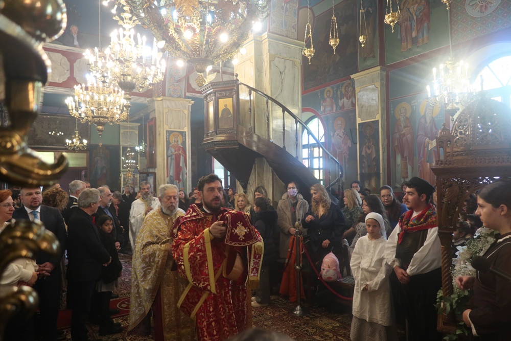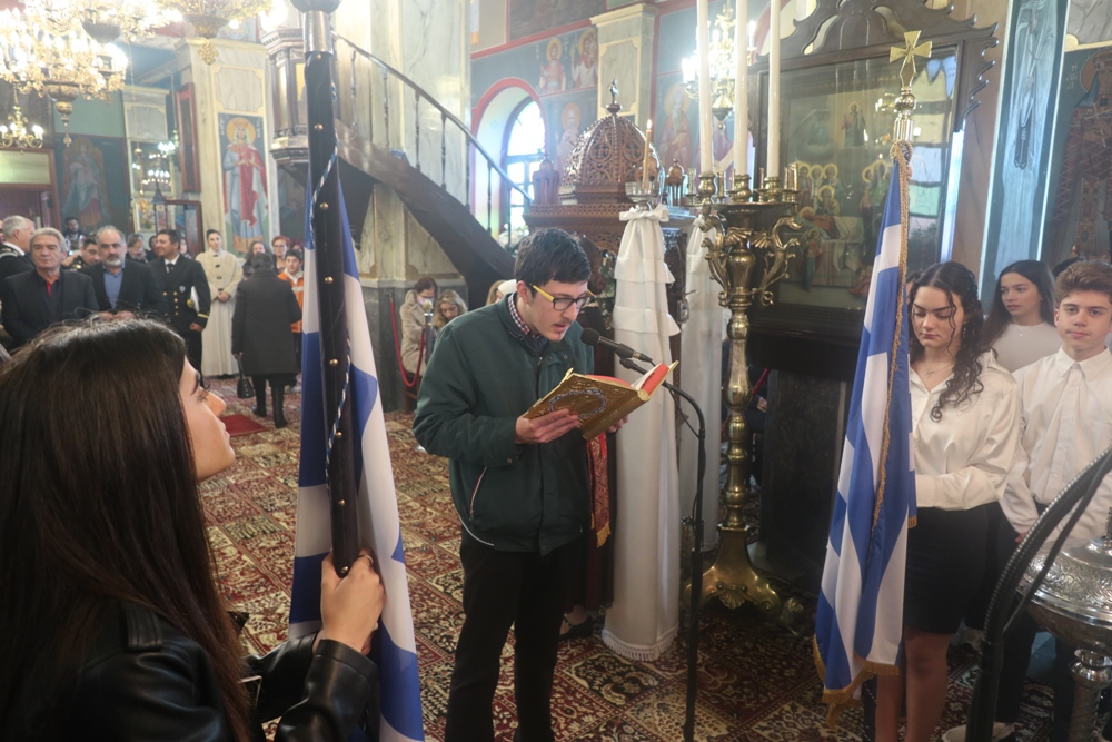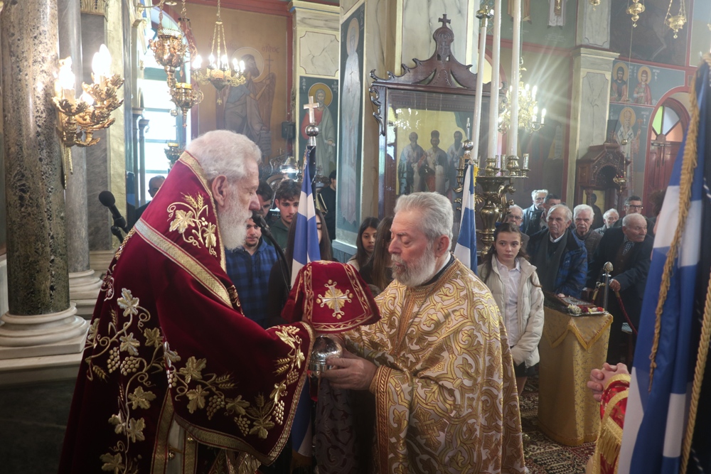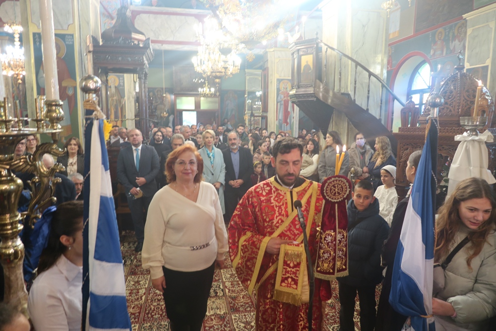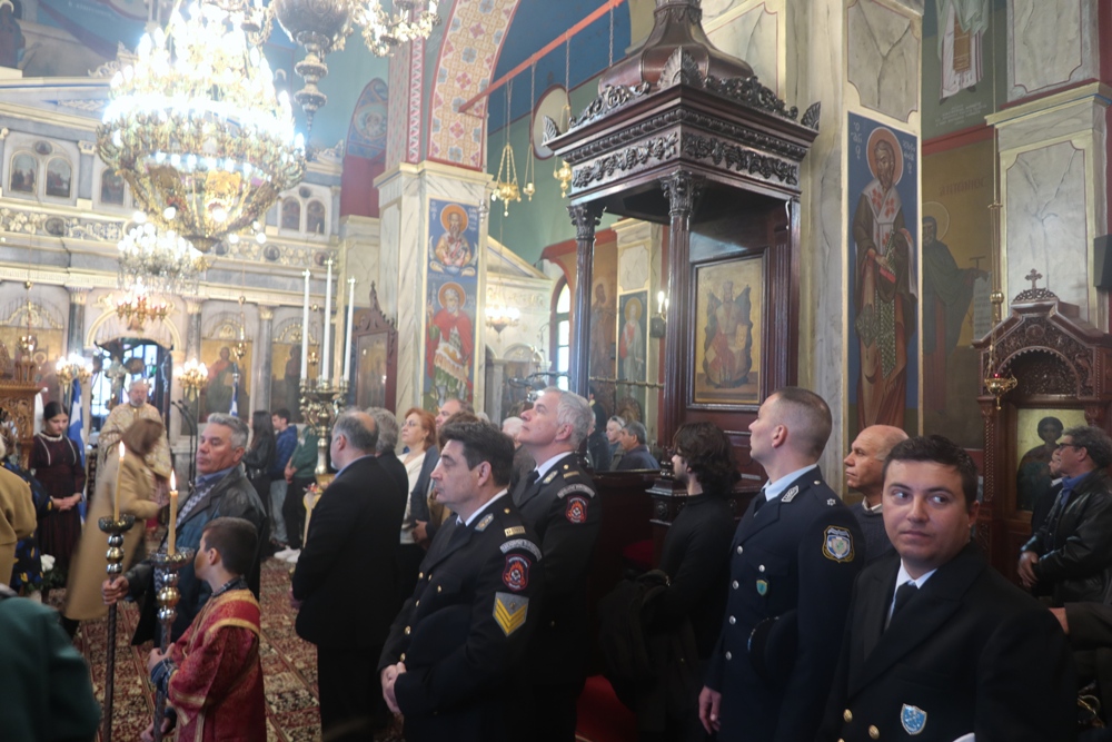 Ακολούθησε λιτάνευση της Ιεράς εικόνας και του ιερού Λειψάνου του Αγίου Χαραλάμπους, προς την Πλατεία Ηρώου, όπου ανεπέμφθη Δέηση και εψάλη ο Εθνικός Ύμνος.