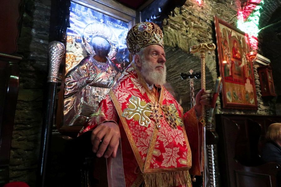 Ήδη ο Σεβασμιώτατος κ. Δωρόθεος Β’ πλέει προς Μύκονο και αύριο το πρωί θα ιερουργήσει στον πάλαι ποτέ Μητροπολιτικό Ναό της Αγίας Ελένης Κάστρου.