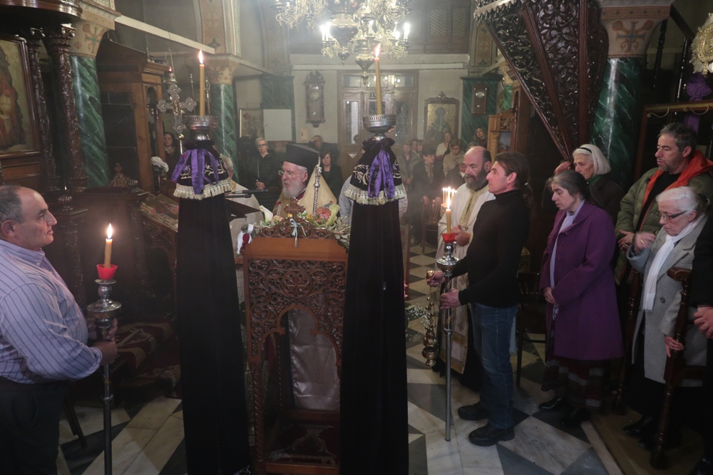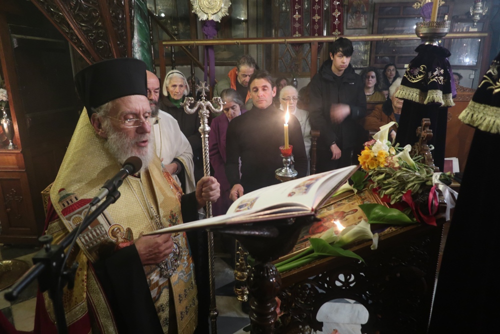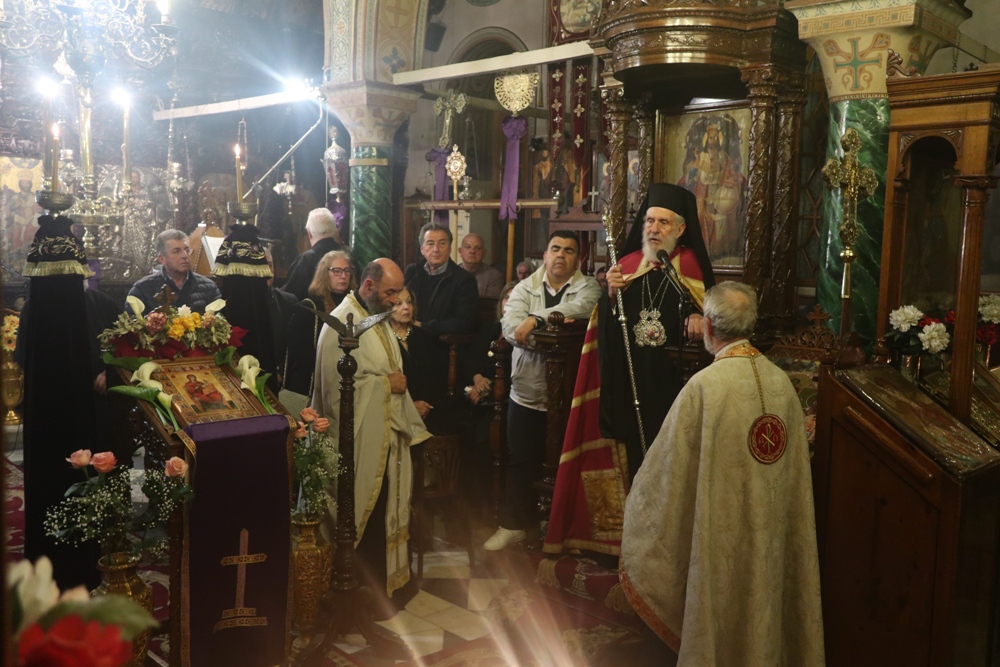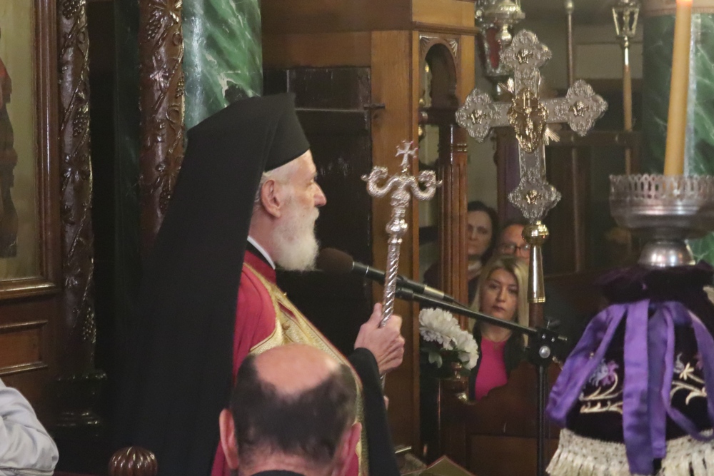 Κηρύσσων το θείο λόγο, ο Σεβασμιώτατος κ. Δωρόθεος Β’, εξ αφορμής της φράσεως του πρώτου Οίκου των σημερινών Χαιρετισμών «Νέαν έδειξεν κτίσιν…», επεσήμανε ότι οπως η φύση ακολούθησε τον άνθρωπο στην αμαρτία και υπέστη τις συνέπειες της έτσι και θα συμμετάσχει, ανακαινιζόμενη, και στην σωτηρία του, τονίζοντας τη συμμετοχή της Θεοτόκου στο σχέδιο της Θείας Οικονομίας.