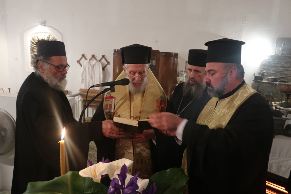 Ακολούθως, ο Σεβασμιώτατος κ. Δωρόθεος Β’ μετέβη στο Συνετί, όπου τέλεσε τον Αγιασμό στο εκεί Λαογραφικό Μουσείο επί τη αναλήψει των καθηκόντων του νέου Διοικητικού Συμβουλίου, και χειροθέτησε Αναγνώστες 4 μέλη του Συλλόγου Ιεροψαλτών Άνδρου «Η ΠΑΝΑΧΡΑΝΤΟΣ», τους κ.κ. Λιοπύρο Κωνσταντίνο, Πρόεδρο του Συλλόγου Ιεροψαλτών «Η ΠΑΝΑΧΡΑΝΤΟΣ», Μαρκόπουλο Απόστολο, Διδάσκαλο Ψαλτικής Σχολής Χώρας, Στρατή Κωνσταντίνο, Διδάσκαλο Ψαλτικής Σχολής Χώρας και Χρυσοστόμου Κωνσταντίνο, Διδάσκαλο Ψαλτικής Σχολής Κορθίου.