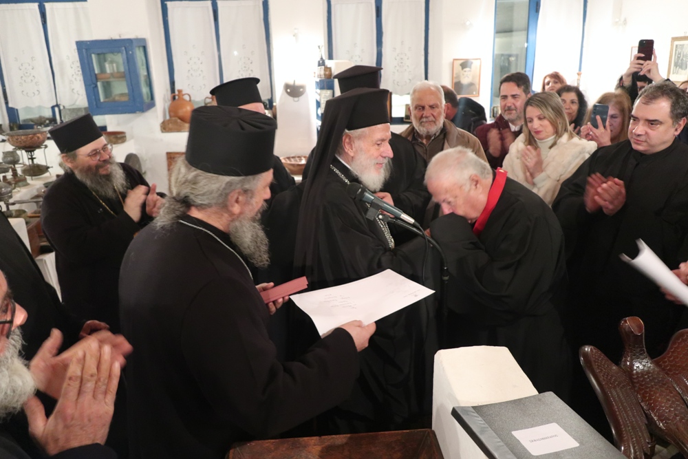 Ο Σεβασμιώτατος κ. Δωρόθεος Β’ συνεχάρη το Σύλλογο Ιεροψαλτών Άνδρου «Η ΠΑΝΑΧΡΑΝΤΟΣ» για τη δράση του και ευχήθηκε να τον πλαισιώσουν και άλλοι νέοι, που θα διακονήσουν τα αναλόγιατων Ναών του νησιού, και απένειμε το Σταυρό της Οσίας Μεθοδίας στον Πρόεδρο του Συλλόγου κ. Κων. Λιοπύρο και στον Ιεροψάλτη κ. Κων. Στρατή.
