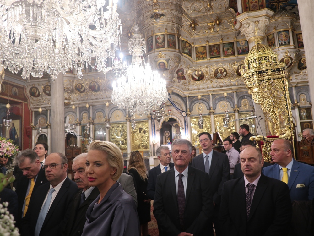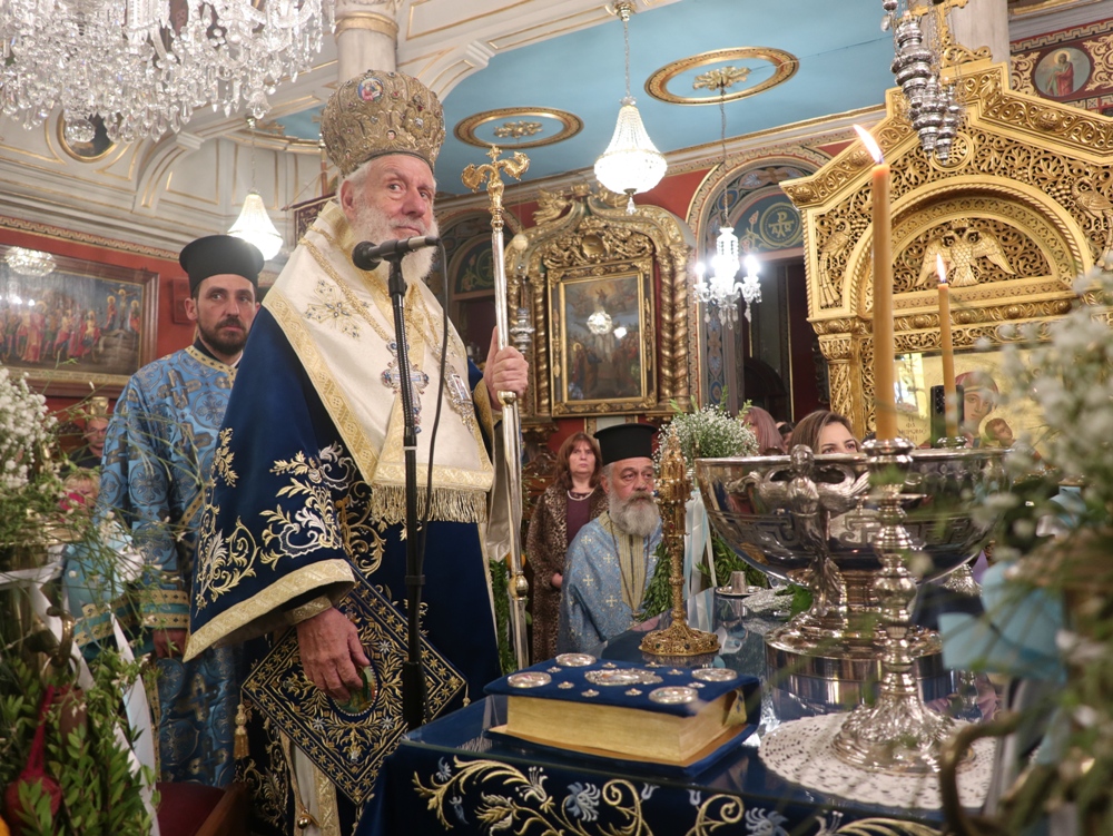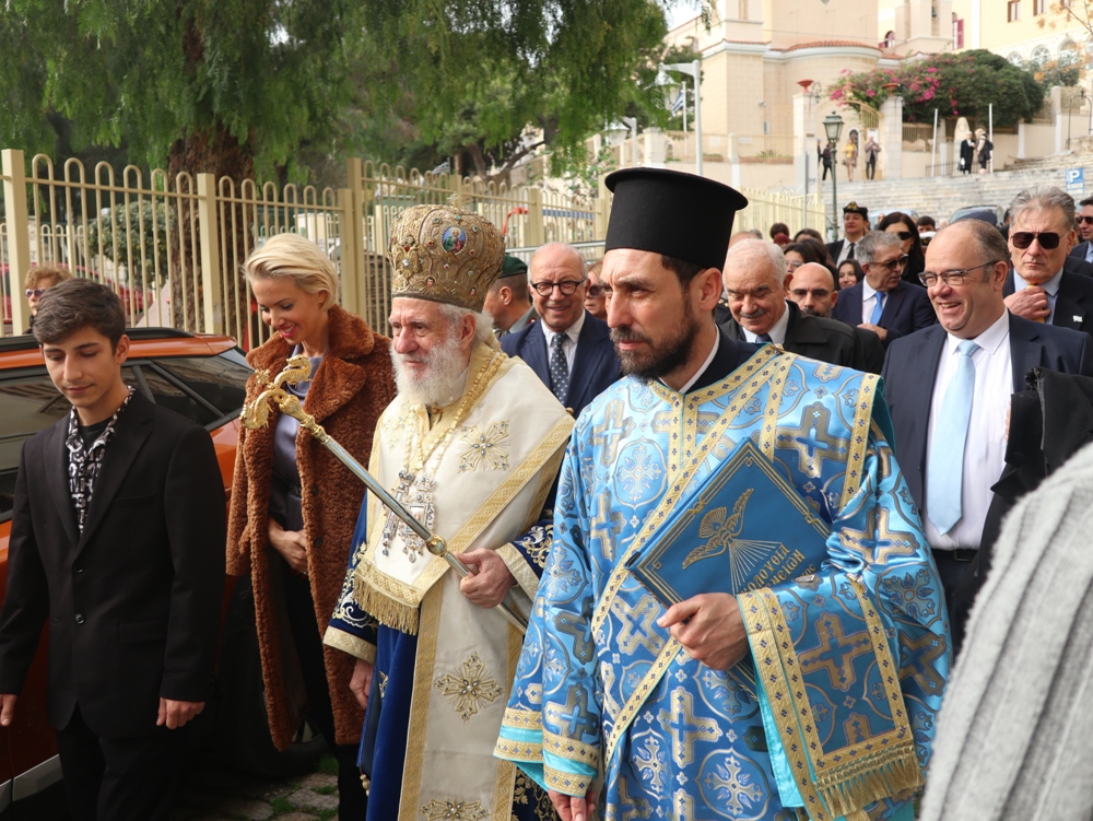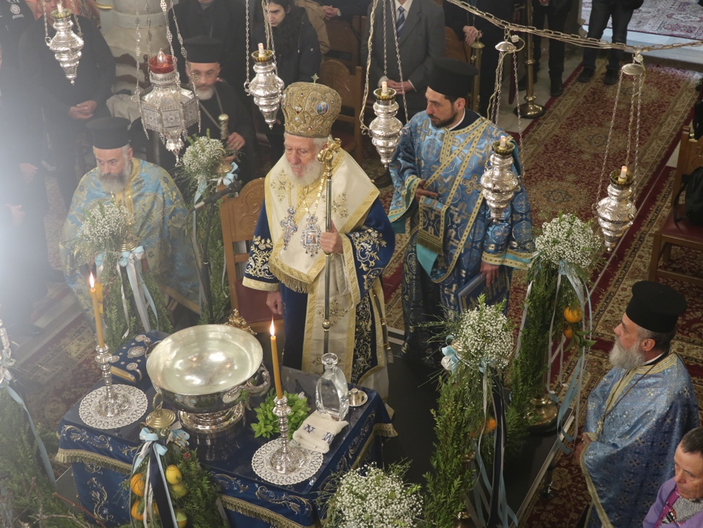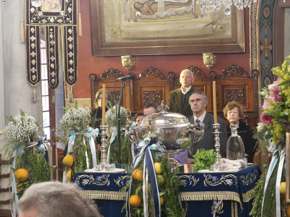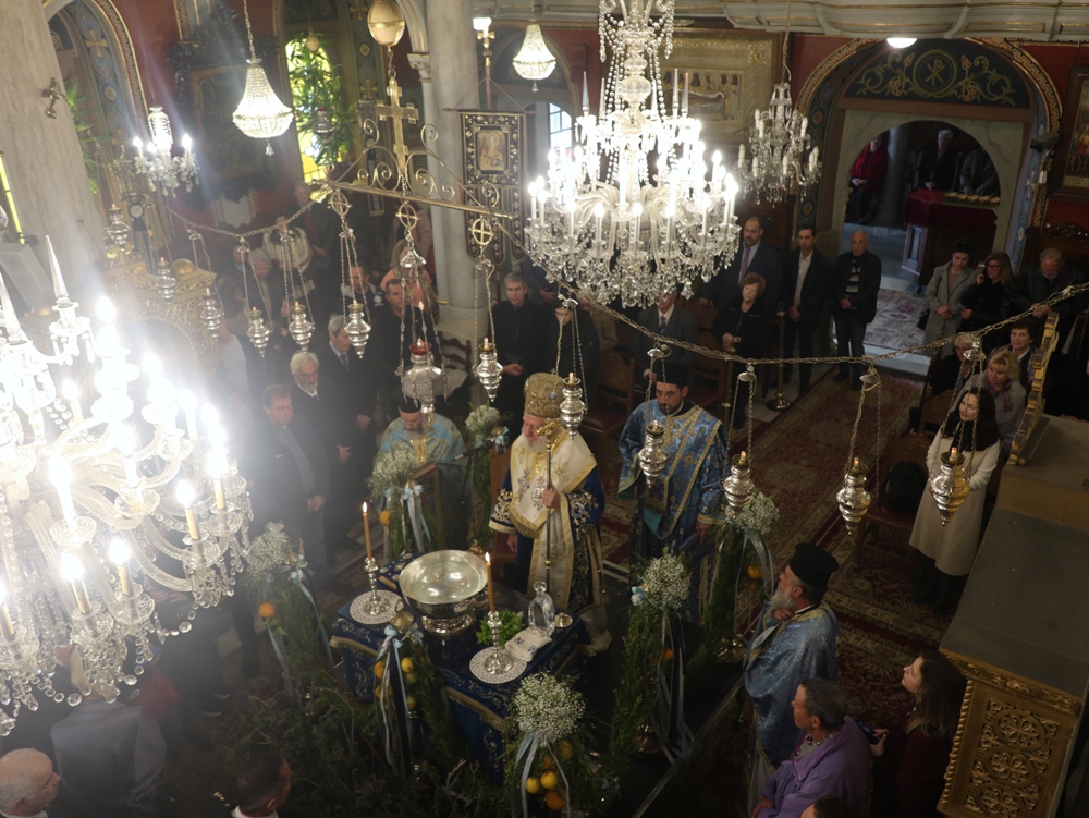 Στον Ιερό Μητροπολιτικό Ναό της Μεταμορφώσεως του Σωτήρος τελέσθηκε σήμερα, ημέρα των Αγίων Θεοφανείων, η Θεία Λειτουργία, την οποία ιερούργησε ο Σεβασμιώτατος κ. Δωρόθεος Β’ και στην οποία παρέστησαν η Βουλευτής Κυκλάδων κα Αικ. Μονογυιού , ο Χωρικός Αντιπεριφερειάρχης Κυκλαδων κ. Γ. Λεονταρίτης, ο Δήμαρχος Σύρου-Ερμούπολης κ. Αλέξ. Αθανασίου, ο Διοικητής της 6ης Περιφέρειας Λιμενικού Σώματος, ο Λιμενάρχης Σύρου και Αξιωματικοί του Λιμενικού Σώματος, ο Στρατηγός των Αστυνομικών Περιφερειακών Υπηρεσιών Ν. Αιγαίου και Αξιωματικοί της Ελληνικής Αστυνομίας, η Διοικήτρια και Σπουδαστές η Ακαδημίας Εμπορικού Ναυτικού Σύρου, ο Διοικητής και Αξιωματικοί των Πυροσβεστικών Υπηρεσιών, ο Υποδιοικητής και Αξιωματικοί της Ναυτικής Βάσης Σύρου, ο Διοικητής και Αξιωματικοί του Τάγματος Εθνοφυλακής Σύρου και πλήθους πιστών.