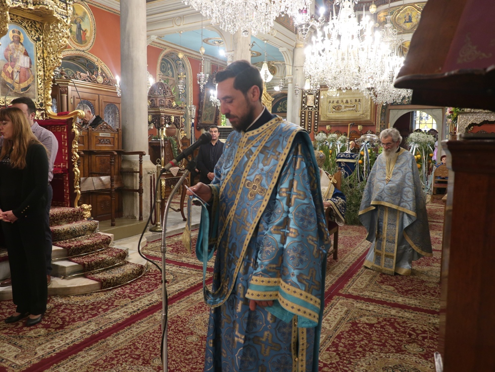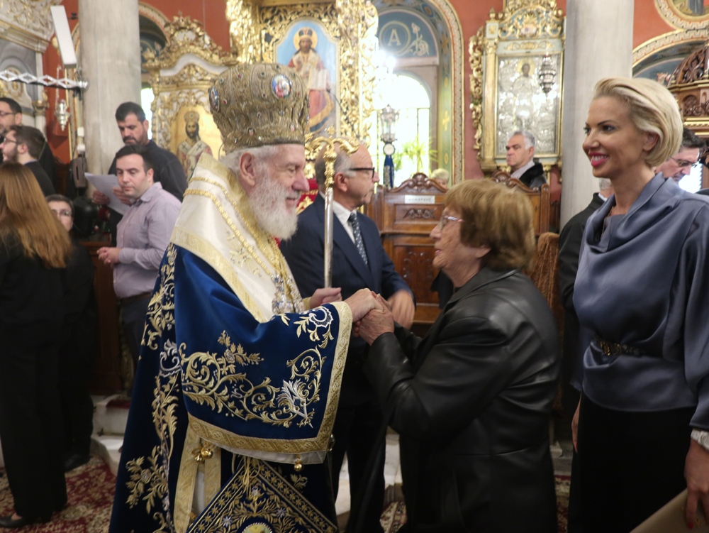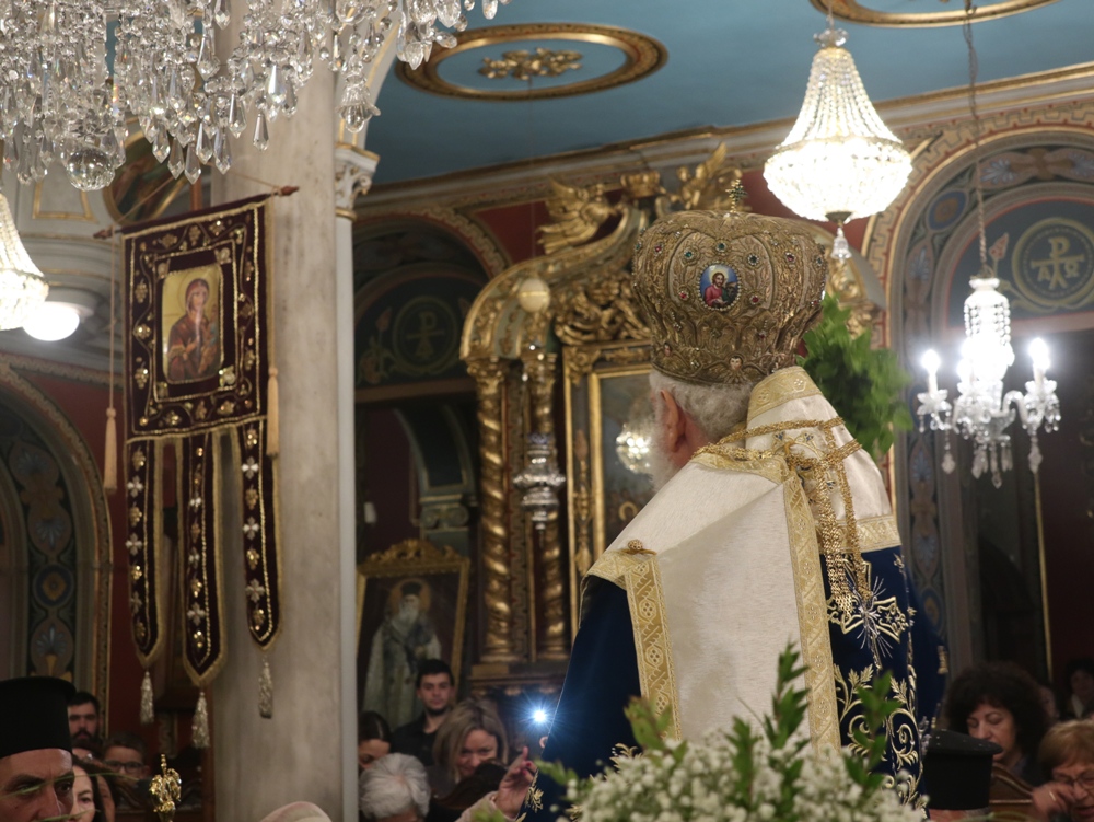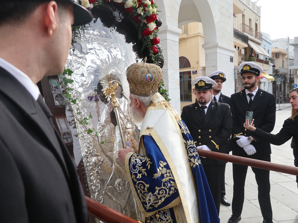 Στα προπύλαια του ιστορικού Θεάτρου «Απόλλων», την ανέμενε η ιερά Εικόνα του Αγίου Νικολάου, η οποία λόγω δυσμενών καιρικών συνθηκών δεν είχε λιτανευθεί την ημέρα της εορτής του, τελεσθείσης στον Ιερό Καθεδρικό Ναό του Αγίου Νικολάου Αρχιερατικής Θείας Λειτουργίας, ιερουργούντος του Σεβασμιωτάτου Μητροπολίτου Πτολεμαΐδος του Πατριαρχείου Αλεξανδρείας κ. Παντελεήμονος