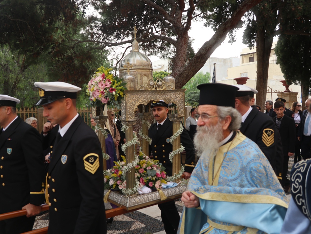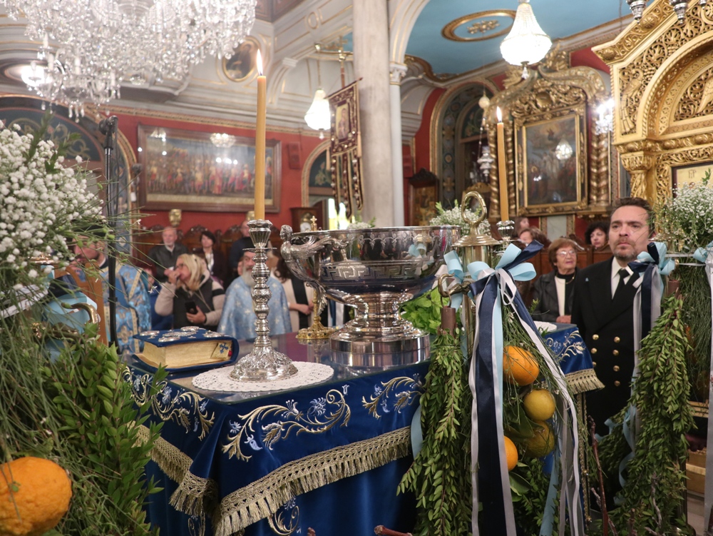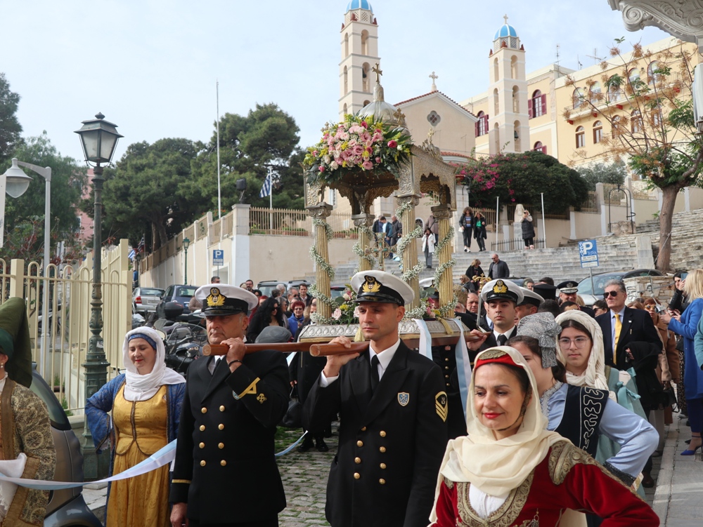 Μετά και την τελετή του Μεγάλου Αγιασμού, εγένετο λαμπρή λιτάνευση του Κουβουκλίου με τον Τίμιο Σταυρό, φερομένου επί των ώμων ανδρών του Λιμενικού Σώματος, κατά το έθος και με πλήρη Εκκλησιαστική τάξη.