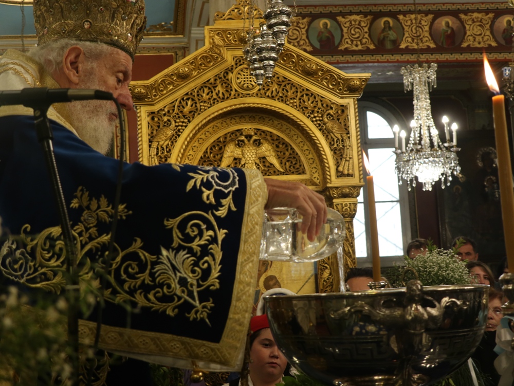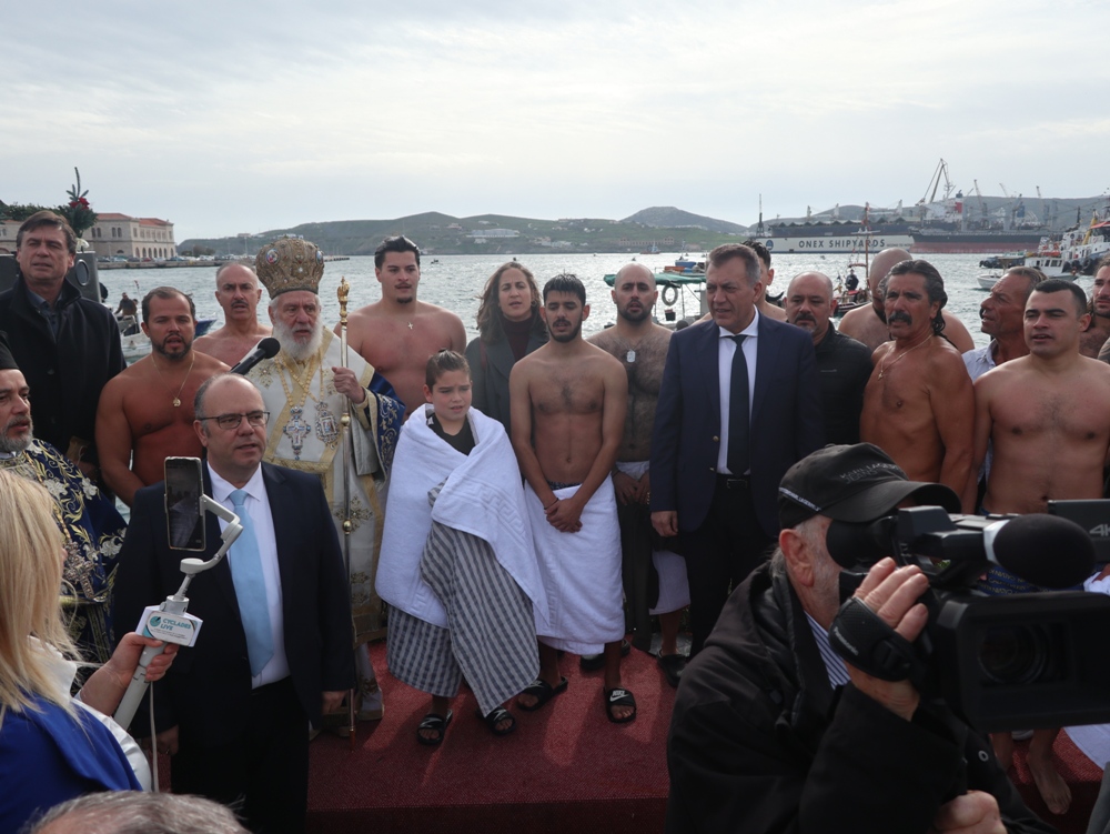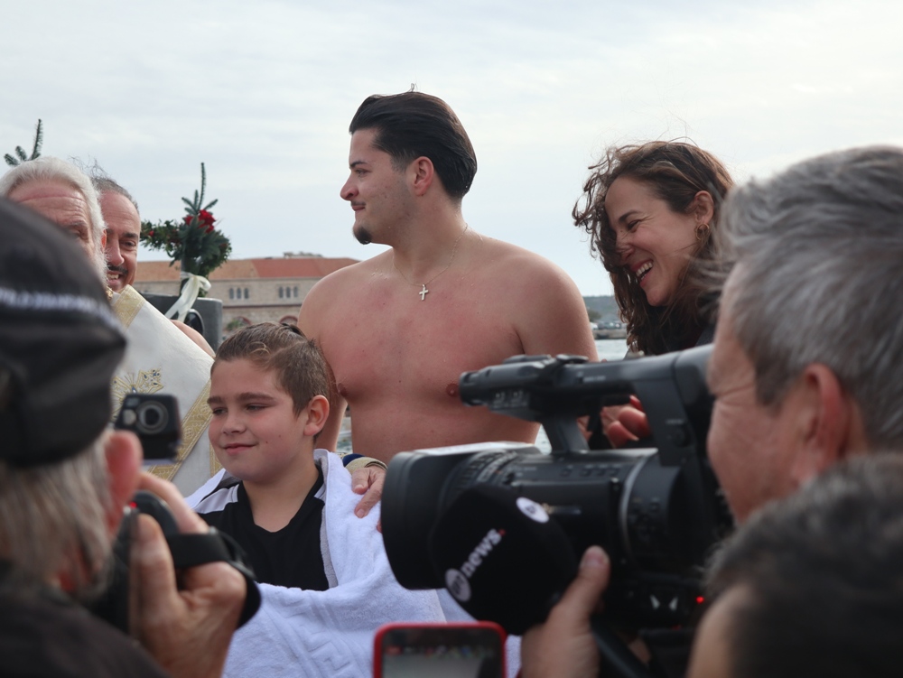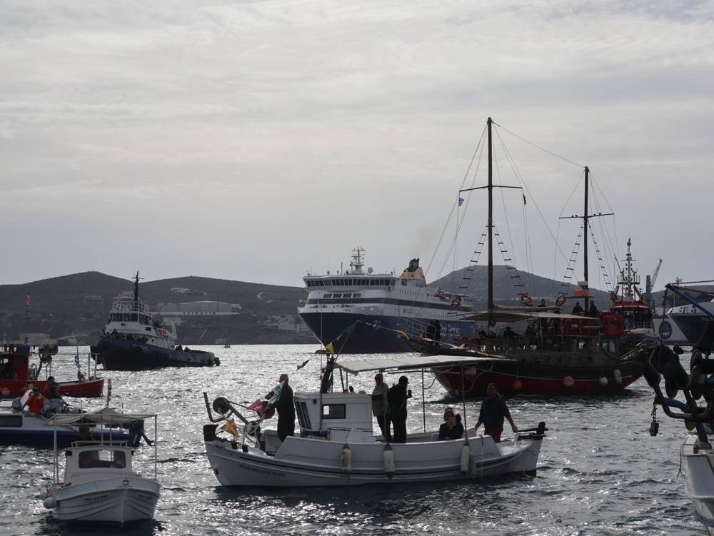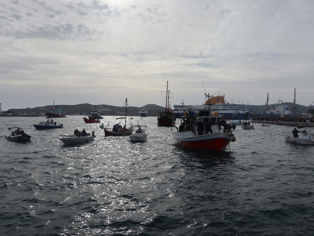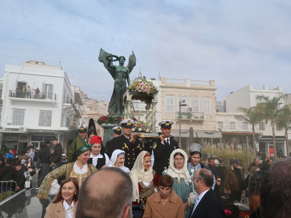 Παρά τις δυσοίωνες προβλέψεις, που και εφέτος διαψεύστηκαν, η Ερμούπολη εόρτασε σήμερα τα Θεοφάνεια, υπό απαλό νέφος προστασίας των πιστών από τις ηλιακές ακτίνες.