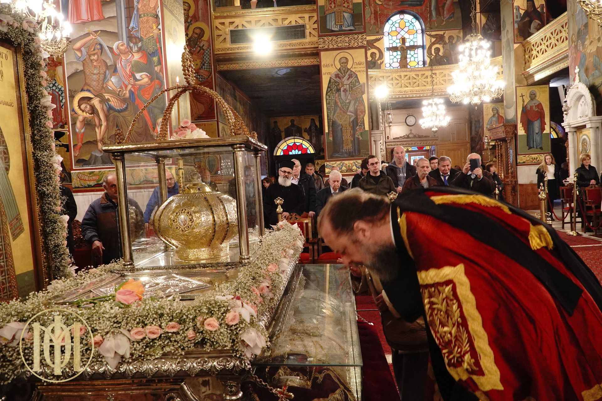 Από την έναρξη του Εσπερινού πλήθος Θεσσαλονικέων αλλά και ομοδόξων αδελφών μας από τα γειτονικά κράτη προσήλθαν στον Ιερό Ναό για να συμμετάσχουν στην πανηγυρική Ιερά Ακολουθία.