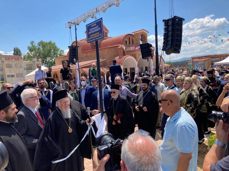 Η τελετή ονοματοδοσίας της πλατείας που βρίσκεται στον Ιερό Ναό του Αγίου Παϊσίου πραγματοποιήθηκε σήμερα, Τρίτη 12 Ιουλίου 2022, από τον Οικουμενικό Πατριάρχη Βαρθολομαίο και τον Μητροπολίτη Ιωαννίνων Μάξιμο.