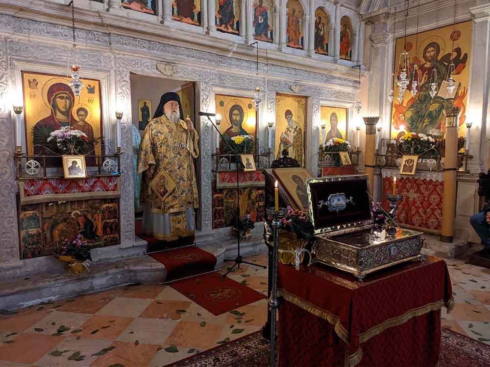 Στην θεία λειτουργία έψαλλε μικρός ιεροψαλτικός χορός υπό τη διεύθυνση του π. Νεκταρίου Μπόκου, ενώ στον εσπερινό της εορτής μίλησε επικαίρως ο Αρχιερατικός Επίτροπος πόλεως Πρωτ. Νικόλαος Μοναστηριώτης.