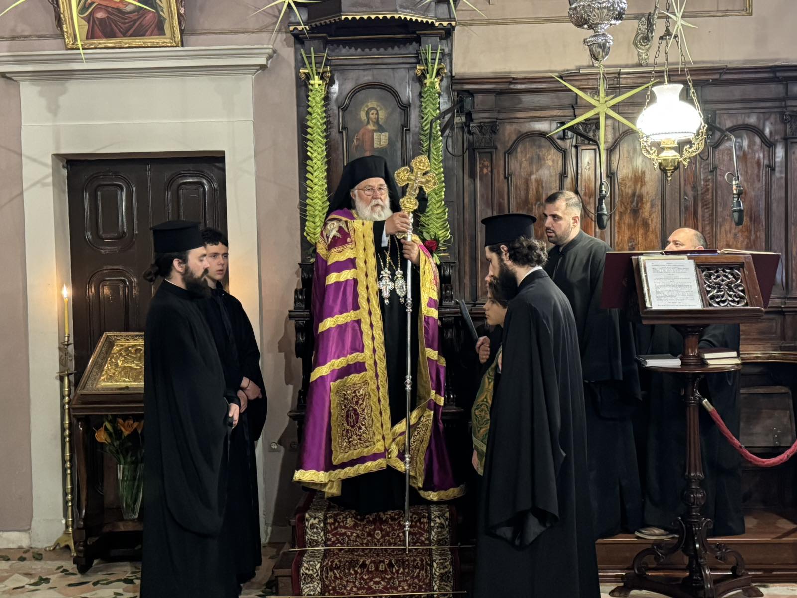 Στο Ιερό προσκύνημα του Αγίου Σπυρίδωνος τελέστηκε το απόγευμα του Σαββάτου 4 Απριλίου 2026 ο Πανηγυρικός Αρχιερατικός Εσπερινός, χοροστατούντος του Σεβασμιωτάτου Μητροπολίτου Κερκύρας, Παξών και Διαποντίων Νήσων κ. Νεκταρίου, για την εορτή των Βαΐων και την ανάμνηση του υπερφυούς θαύματος με το οποίο ο Άγιος Σπυρίδων έσωσε την Κέρκυρα από την πανώλη το 1630.