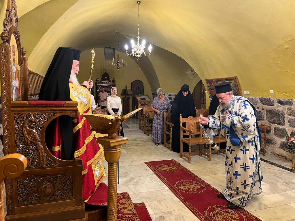 Εἰς τήν ὡραίαν παραλιακήν Ἱεράν Μονήν ταύτην ἐχοροστάτησε εἰς Ἑσπερινόν ἀφ’ ἑσπέρας καί προεξῆρξε τῆς πανηγυρικῆς Πατριαρχικῆς θείας Λειτουργίας ἡ Α.Θ.Μ. ὁ Πατήρ ἡμῶν καί Πατριάρχης Ἱεροσολύμων κ.κ. Θεόφιλος, συλλειτουργούντων Αὐτῷ τῶν Σεβασμιωτάτων Μητροπολιτῶν Ναζαρέτ κ. Κυριακοῦ καί Πτολεμαΐδος κ. Μακαρίου, τοῦ Γέροντος Ἀρχιγραμματέως Σεβασμιωτάτου Ἀρχιεπισκόπου Κωνσταντίνης κ. Ἀριστάρχου καί τοῦ Γραμματέως τῆς Ἁγίας και Ἱερᾶς Συνόδου Ἀρχιμανδρίτου π. Χριστοδούλου, Ἀραβοφώνων και Ρωσοφώνων Ἱερέων τῶν ὁμόρων περιοχῶν, τοῦ Ἀρχιδιακόνου π. Μάρκου καί τοῦ Ἱεροδιακόνου π. Προδρόμου καί πιστῶν τῆς περιοχῆς.