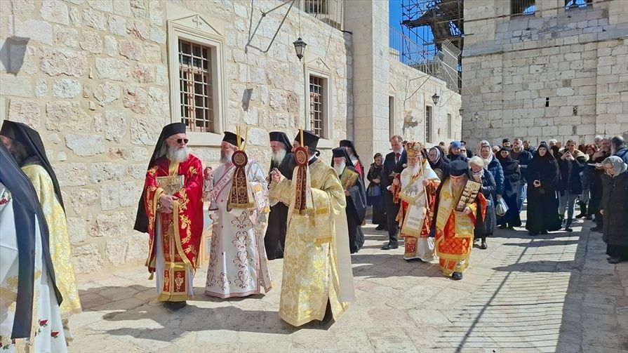 Λόγῳ τοῦ ἀρξαμένου πολέμου μεταξὺ Ἡνωμένων Πολιτειῶν Ἀμερικῆς καὶ Ἱρὰν καὶ λόγῳ τῶν βομβαρδισμῶν τοῦ Ἱρὰν εἰς τὴν ἐνδοχώραν τοῦ Ἰσραὴλ καὶ δὴ εἰς τὴν Ἁγίαν Πόλιν Ἱερουσαλὴμ, ὁ Ἑσπερινὸς τῆς Κυριακῆς ταύτης τῆς Ὀρθοδοξίας δέν ἐτελέσθη κατὰ τὴν τάξιν εἰς τὸν κλεισθέντα Πανίερον Ναὸν τῆς Ἀναστάσεως, ἀλλ’ εἰς τὸν Πατριαρχικὸν καὶ μοναστηριακὸν Ναὸν τῶν Ἁγίων Κωνσταντίνου καὶ Ἑλένης, χοροστατούσης τῆς Α.Θ.Μ. τοῦ Πατρὸς ἡμῶν καὶ Πατριάρχου Ἱεροσολύμων κ.κ. Θεοφίλου καὶ συνιερουργούντων τῶν Ἁγιοταφιτῶν Πατέρων ἐφημερίων τοῦ Ναοῦ καί συμπροσευχομένων τῶν Ἁγιοταφιτῶν Ἀρχιερέων.
