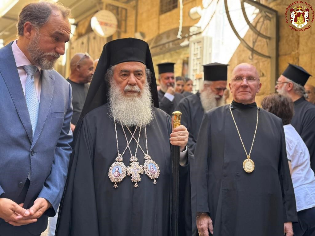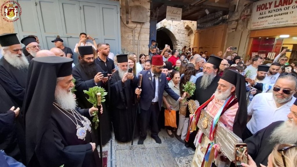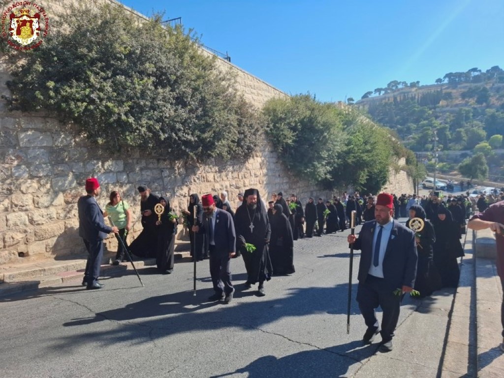 Ἡ λιτανεία ἀνῆλθε διερχομένη διά τῆς Ὁδοῦ τοῦ Μαρτυρίου καί ποιοῦσα δεήσεις ἐν ταῖς στάσεσιν τῶν Μονῶν Ἁγίου Στεφάνου, Ἁγίας Ἄννης, Πραιτωρίου, τῆς Μονῆς τοῦ Ἁγίου Χαραλάμπους καί τῆς Μονῆς Σεϊδανάγιας, καί ἔφθασεν εἰς τήν διασταύρωσιν τῆς Ὁδοῦ τοῦ Πατριαρχείου καί τῆς Χριστιανικῆς Ὁδοῦ, ἐνθα ἀνέμενεν αὐτήν ἡ Α.Θ.Μ. ὁ Πατήρ ἡμῶν καί Πατριάρχης Ἱεροσολύμων κ.κ. Θεόφιλος μετά Πατέρων Ἁγιοταφιτῶν.