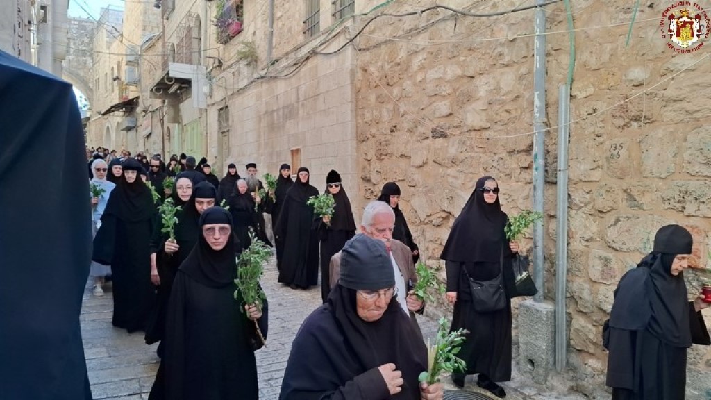 Τῆς ἱερᾶς λιτανείας προεπορεύοντο Ἱερεῖς ἐνδεδυμένοι, πολλαί μοναχαί ἐκ τοῦ Πατριαρχείου καί ἐκ Ρωσίας, Ρουμανίας καί ἄλλων χωρῶν, καί ἠκολούθουν ὁ Σεβασμιώτατος Μητροπολίτης Πτολεμαΐδος – Ἄκκρης κ. Μακάριος, οἱ Ἐπίτροποι, αἱ χριστιανικαί νεολαῖαι τῆς Ἱερουσαλήμ καί ἱκανός ἀριθμός ἐντοπίων καί προσκυνητῶν, τῶν ψαλτῶν ψαλλόντων «Ἀπόστολοι ἐκ περάτων…» καί «Ἐν τῇ Γεννήσει τήν παρθενίαν ἐφύλαξας…».