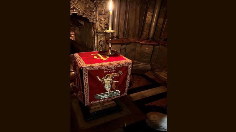 Διά τήν ἑορτήν ταύτην ἐτελέσθη Πασχάλιος πανηγυρική θεία Λειτουργία εἰς τόν μοναστηριακόν Ναόν τῶν Ἁγίων Κωνσταντίνου καί Ἑλένης, προεξαρχούσης τῆς Α.Θ.Μ. τοῦ Πατρός ἡμῶν καί Πατριάρχου Ἱεροσολύμων κ.κ. Θεοφίλου καί συμπροσευχομένων τῶν Ἁγιοταφιτῶν Πατέρων καί τοῦ Ἀρχιδιακόνου π. Μάρκου.