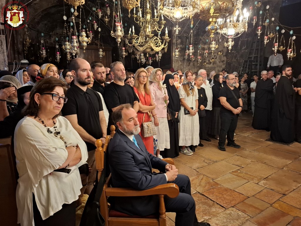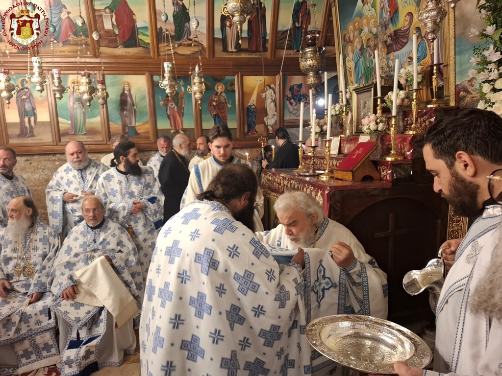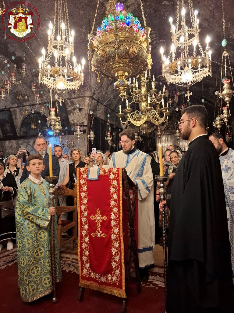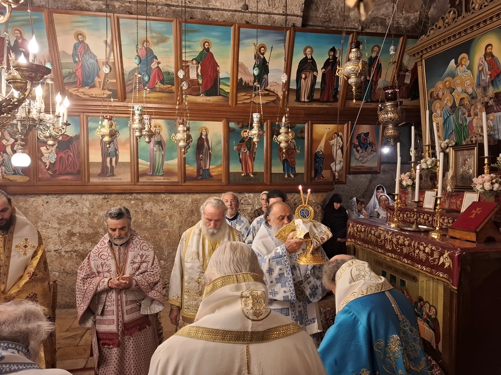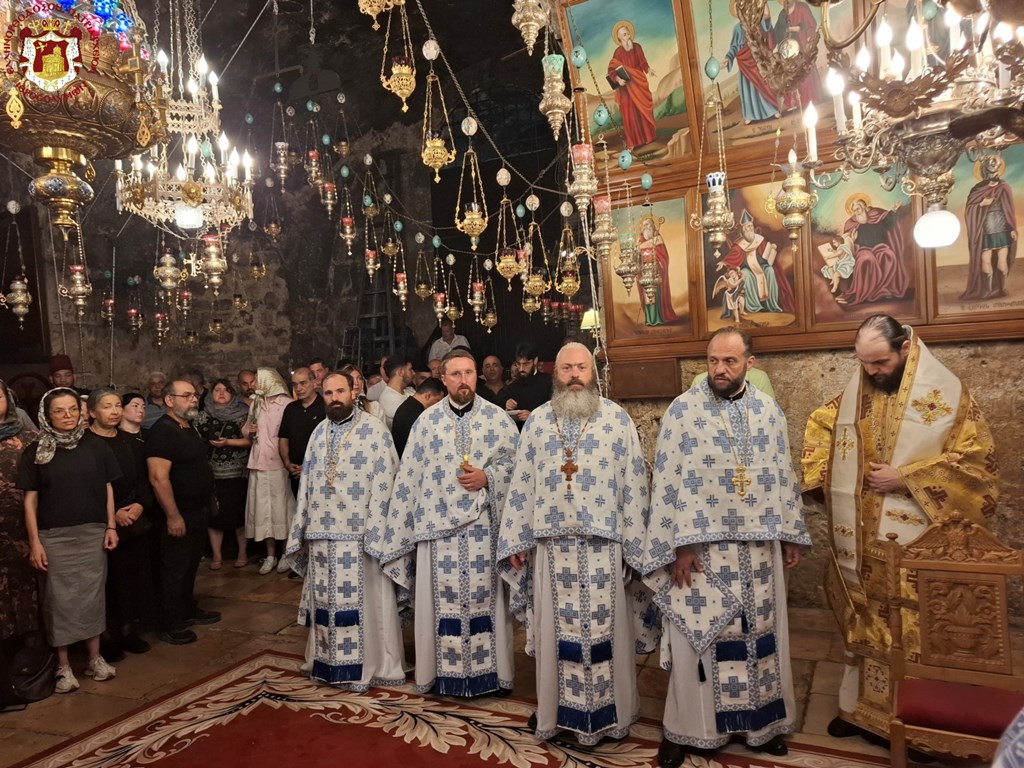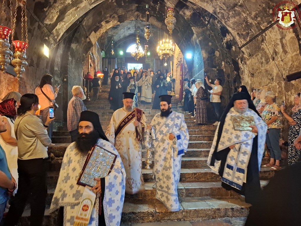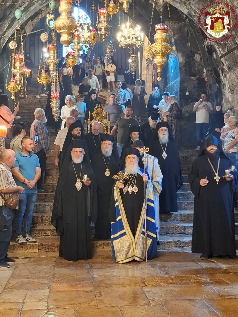 Τήν πρωΐαν ἐτελέσθη Ὄρθρος καί θεία Λειτουργία, τῆς ὁποίας προεξῆρξεν ὁ Πατήρ ἡμῶν καί Πατριάρχης Ἱεροσολύμων κ.κ. Θεόφιλος συλλειτουργούντων τῶν Ἀρχιερέων τοῦ Πατριαρχείου, Σεβασμιωτάτου Μητροπολίτου Καπιτωλιάδος κ. Ἡσυχίου, Σεβασμιωτάτου Μητροπολίτου Βόστρων κ. Τιμοθέου, καί τῶν Σεβασμιωτάτων Ἀρχιεπισκοπων Γεράσων κ. Θεοφάνους, Κωνσταντίνης κ. Ἀριστάρχου, Λύδδης κ. Δημητρίου, Πέλλης κ. Φιλουμένου τοῦ παρεπιδημοῦντος Θεοφιλεστάτου Βοηθοῦ Ἐπισκόπου Τροτουσανούλ κ. Θεοφίλου τοῦ Πατριαρχείου Ρουμανίας, τῶν ἐκπροσώπων Ἀρχιμανδριτῶν τοῦ Πατριαρχείου Μόσχας π. Βασιανοῦ καί τοῦ Πατριαρχείου Ρουμανίας π. Ἰωάννου καί πολλῶν Ἱερομονάχων καί Ἱερέων, τοῦ Ἀρχιδιακόνου π. Μάρκου καί τῶν Ἱεροδιακόνων Εὐλογίου καί Προδρόμου, ψάλλοντος τοῦ Πρωτοψάλτου διακόνου π. Εὐσταθίου καί τῆς Ἀραβικῆς χορῳδίας τοῦ Ναοῦ καί μετέχοντος πιστοῦ εὐλαβοῦς ἐκκλησιάσματος, παρουσίᾳ τοῦ Γενικοῦ Προξένου τῆς Ἑλλάδος εἰς τά Ἱεροσόλυμα κ. Δημητρίου Ἀγγελοσοπούλου.