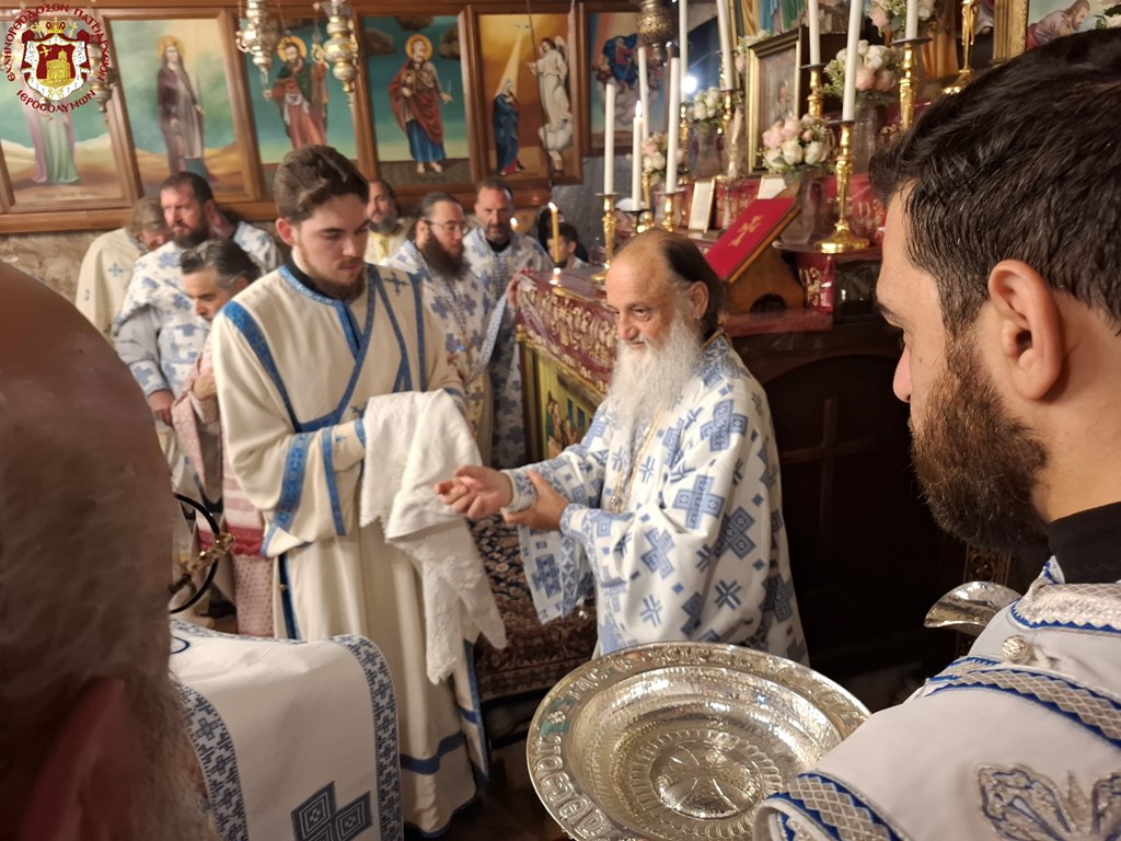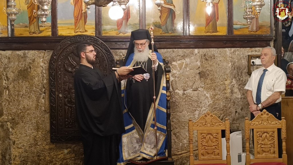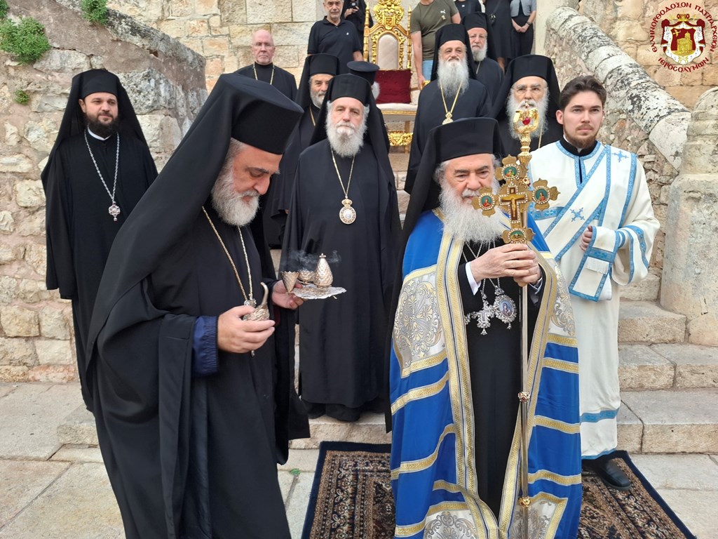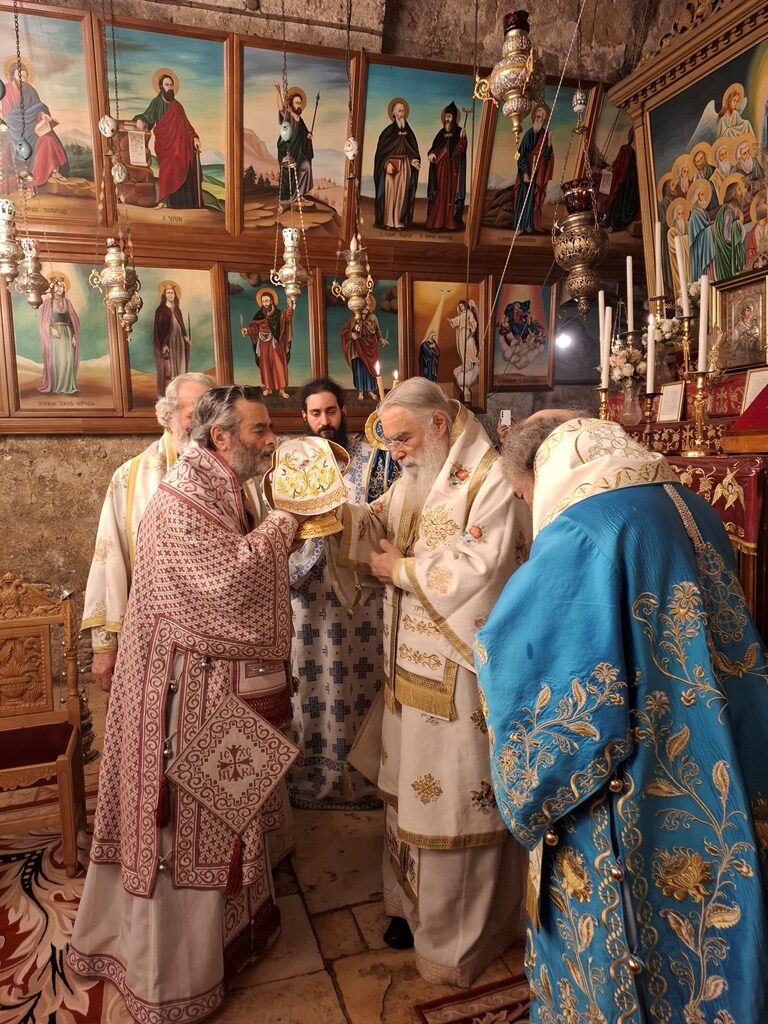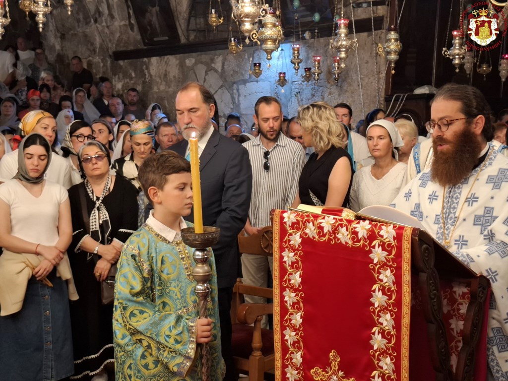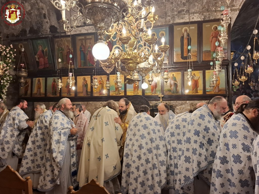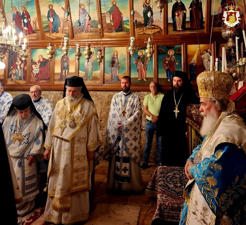 Τήν πρωΐαν ἐτελέσθη Ὄρθρος καί θεία Λειτουργία, τῆς ὁποίας προεξῆρξεν ὁ Πατήρ ἡμῶν καί Πατριάρχης Ἱεροσολύμων κ.κ. Θεόφιλος συλλειτουργούντων τῶν Ἀρχιερέων τοῦ Πατριαρχείου, Σεβασμιωτάτου Μητροπολίτου Καπιτωλιάδος κ. Ἡσυχίου, Σεβασμιωτάτου Μητροπολίτου Βόστρων κ. Τιμοθέου, καί τῶν Σεβασμιωτάτων Ἀρχιεπισκοπων Γεράσων κ. Θεοφάνους, Κωνσταντίνης κ. Ἀριστάρχου, Λύδδης κ. Δημητρίου, Πέλλης κ. Φιλουμένου τοῦ παρεπιδημοῦντος Θεοφιλεστάτου Βοηθοῦ Ἐπισκόπου Τροτουσανούλ κ. Θεοφίλου τοῦ Πατριαρχείου Ρουμανίας, τῶν ἐκπροσώπων Ἀρχιμανδριτῶν τοῦ Πατριαρχείου Μόσχας π. Βασιανοῦ καί τοῦ Πατριαρχείου Ρουμανίας π. Ἰωάννου καί πολλῶν Ἱερομονάχων καί Ἱερέων, τοῦ Ἀρχιδιακόνου π. Μάρκου καί τῶν Ἱεροδιακόνων Εὐλογίου καί Προδρόμου, ψάλλοντος τοῦ Πρωτοψάλτου διακόνου π. Εὐσταθίου καί τῆς Ἀραβικῆς χορῳδίας τοῦ Ναοῦ καί μετέχοντος πιστοῦ εὐλαβοῦς ἐκκλησιάσματος, παρουσίᾳ τοῦ Γενικοῦ Προξένου τῆς Ἑλλάδος εἰς τά Ἱεροσόλυμα κ. Δημητρίου Ἀγγελοσοπούλου.